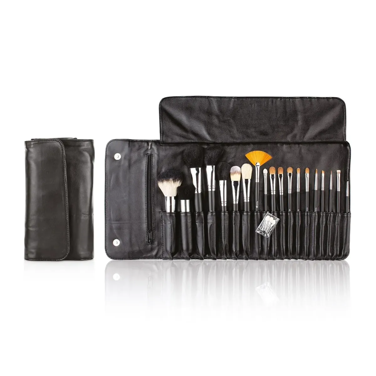 Porta Pennelli Make Up in Pelle Set con 19 Pennelli Inclusi