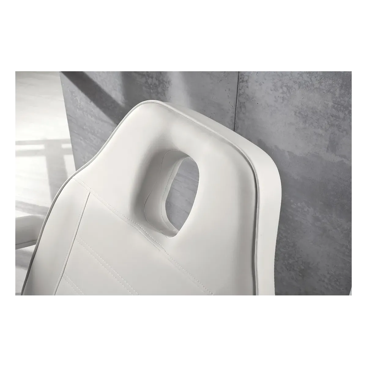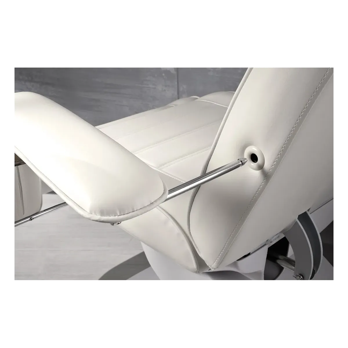 Questa poltrona lettino estetista presenta 2 snodi che dividono seduta, schienale e gambali che risultano comodissimi grazie alla loro imbottitura in poliuretano schiumato e il rivestimento in skai ecopelle di colore bianco. Sono presenti anche dei braccioli che si estendono con l'inclinazione dello schienale, ma all'occorrenza possono essere anche rimossi per favorire la comodità del cliente in posizione distesa.