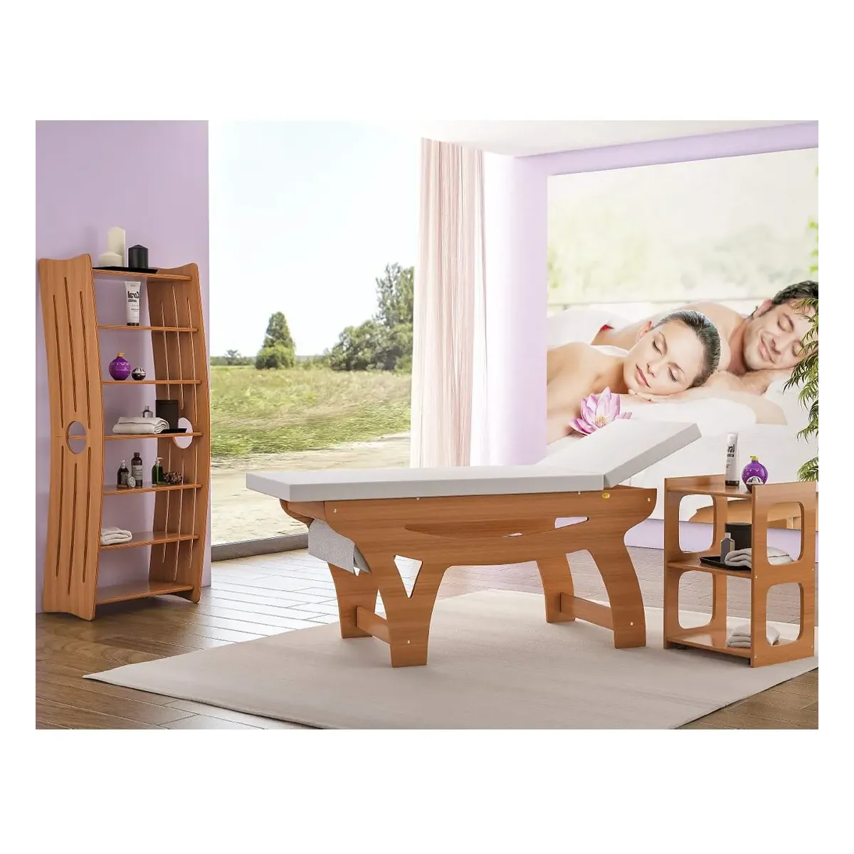 Questo elegante arredo estetico, interamente realizzato in Italia, è progettato per trasformare ogni spazio in un'oasi di relax e benessere. Il cuore di questo set è il lettino massaggi, un'isola di comfort dove i clienti potranno abbandonarsi a trattamenti rigeneranti. La struttura in legno massello, disponibile in una vasta gamma di tonalità, permette di personalizzare l'ambiente in base ai propri gusti e allo stile dell'arredamento circostante.