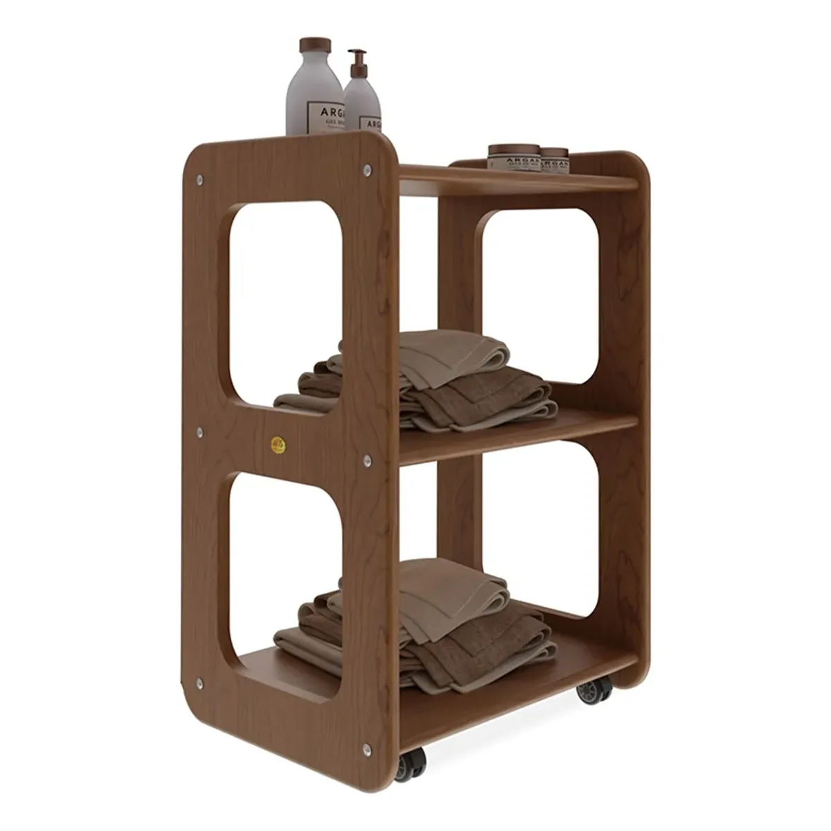 Il carrello estetica in legno funzionale, perfetto per organizzare e trasportare gli strumenti e i prodotti necessari per i trattamenti estetici.