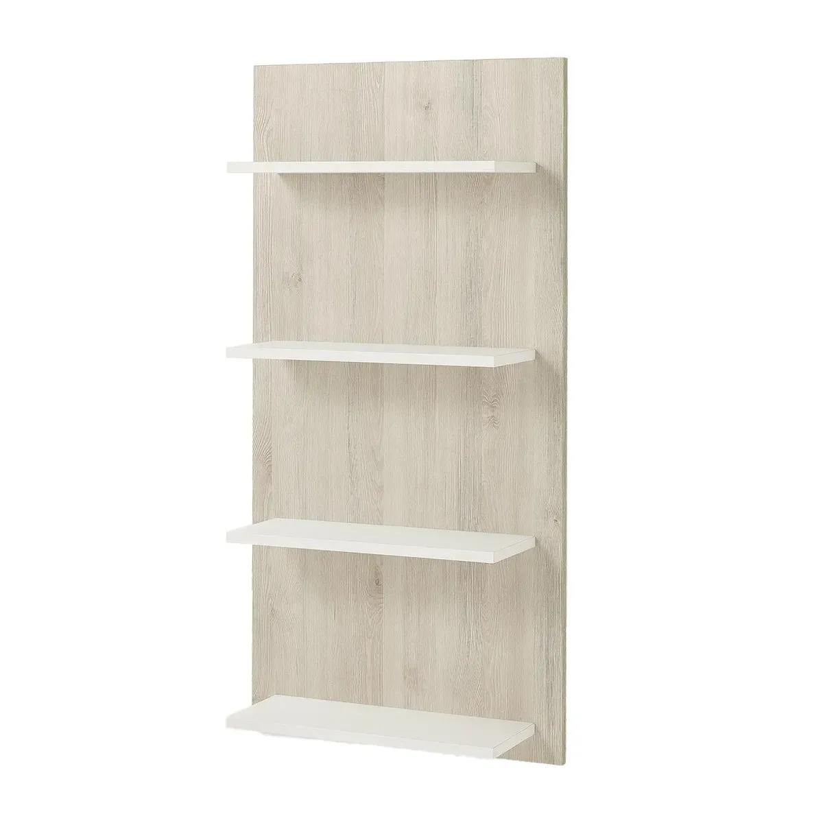 Espositore da Parete con un pannello realizzato in legno larice naturale su cui sono fissate 4 comode mensole in legno laminato bianco che fanno un leggero contrasto con il colore del pannello. Con questo espositore a muro arricchirai il tuo centro estetico dando un tocco di classico grazie ai colori naturali di cui è fatto, oltre alla sua vera e propria funzionalità di poter riporre asciugamani, prodotti e attrezzature comodamente.