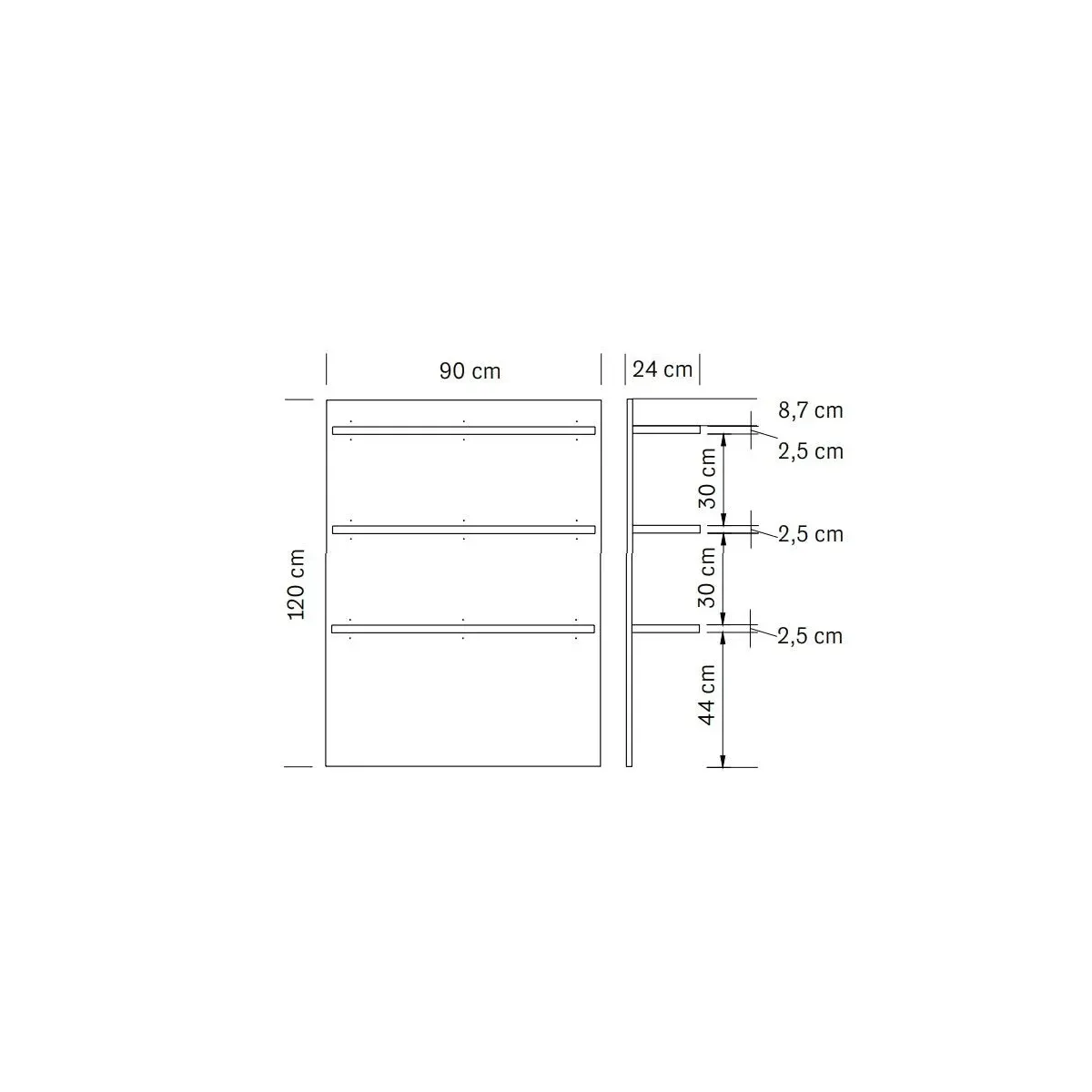 Questo mobile è infatti composto da ben due espositori a parete, ciascuno con tre mensole per tenere ordinati i prodotti esposti come creme per trattamenti viso e corpo o altre fornitura che servono a te estetista per svolgere comodamente il tuo lavoro.