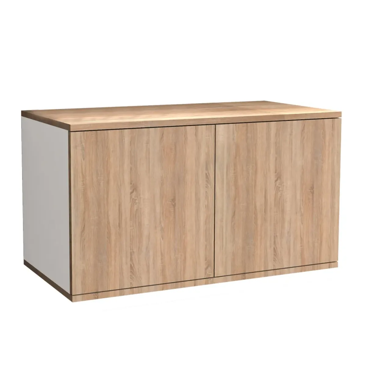 Questi due mobili centro estetico sono sospesi dal pavimento creando un bellissimo ambiente ordinato e pulito anche grazie al colore rovere e bianco. Uno dei due mobili è completo di lavello con miscelatore, mentre entrambi sono provvisti di 2 ante con sistema di apertura premi/apri a scatto.