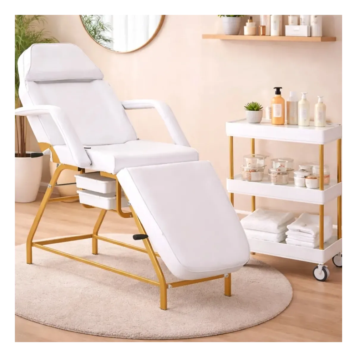 Lettino Massaggi con Carrello Bianco e Oro – Offerta Centro Estetico