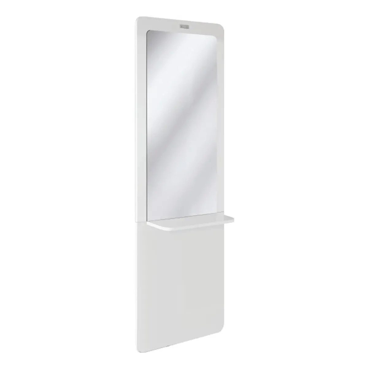 Gli specchi parrucchiere Roma hanno una struttura realizzata in nobilitato bianco, è compresa anche una mensola per l'appoggio degli oggetti personali dei clienti, anch'essa realizzata in nobilitato. Lo specchio viene fissato a parete ed occupa una larghezza di 68 centimetri per un'altezza di 2 metri.