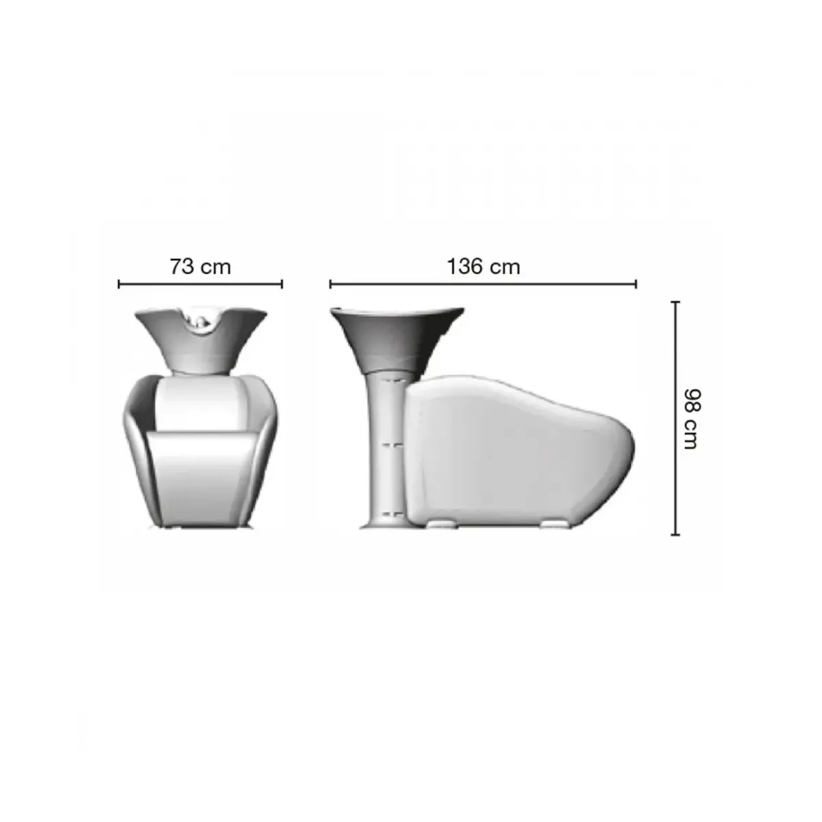 I lavaggi parrucchiere Genova sono realizzati con seduta e braccioli in poliuretano schiumato con inserto interno in legno multistrato e metallo, il tutto rivestito in skai con colori personalizzabili come da foto. La colonna che racchiude il serbatoio è fatta in ABS di colore nero dove appoggia una vasca in ceramica di colore bianco con snodo oscillante regolabile in altezza completa di miscelatore e lavabo con doccetta estraibile. Il lavatesta ha un'altezza di 99 centimetri, una larghezza di 72 centimetri ed una profondità di 1,36 metri.