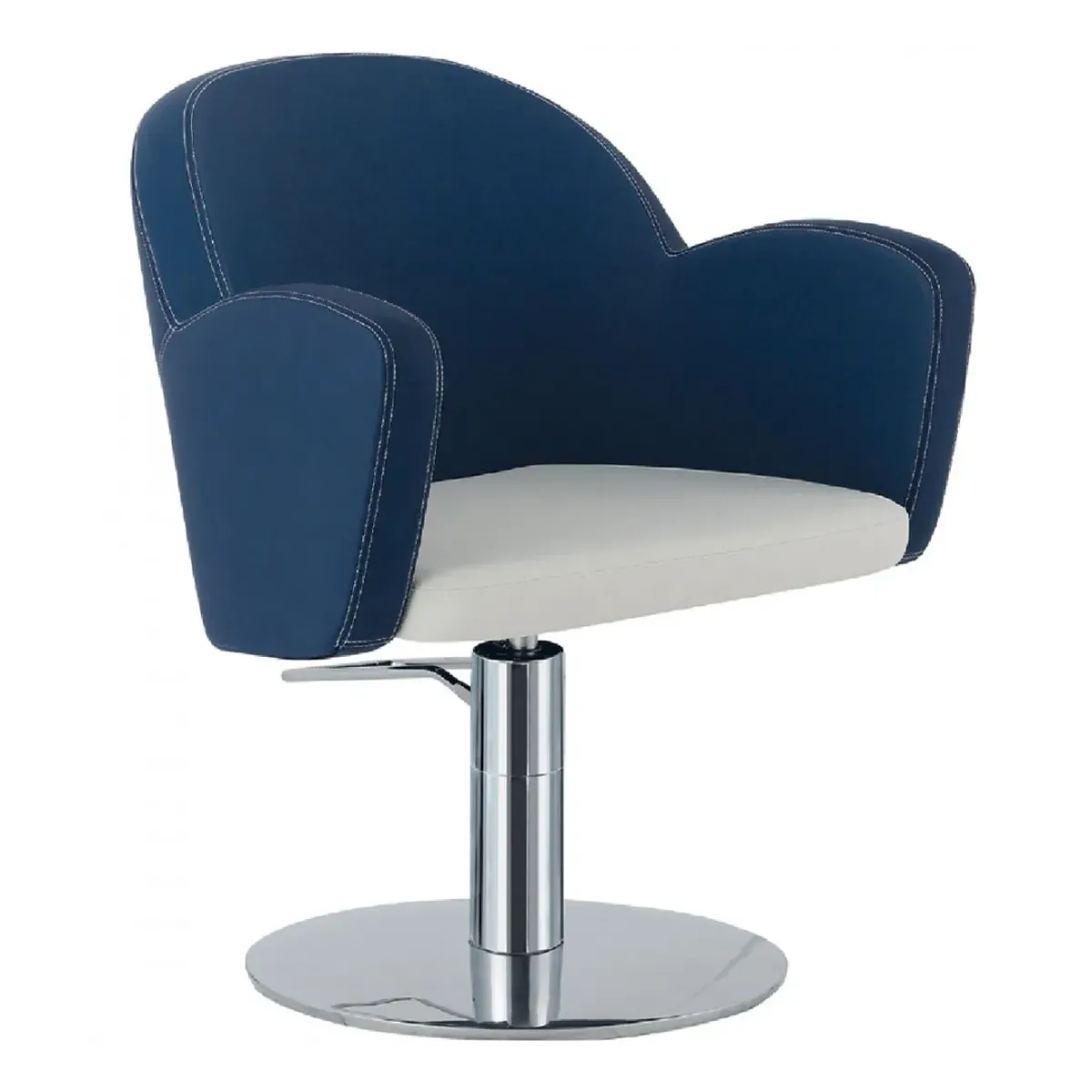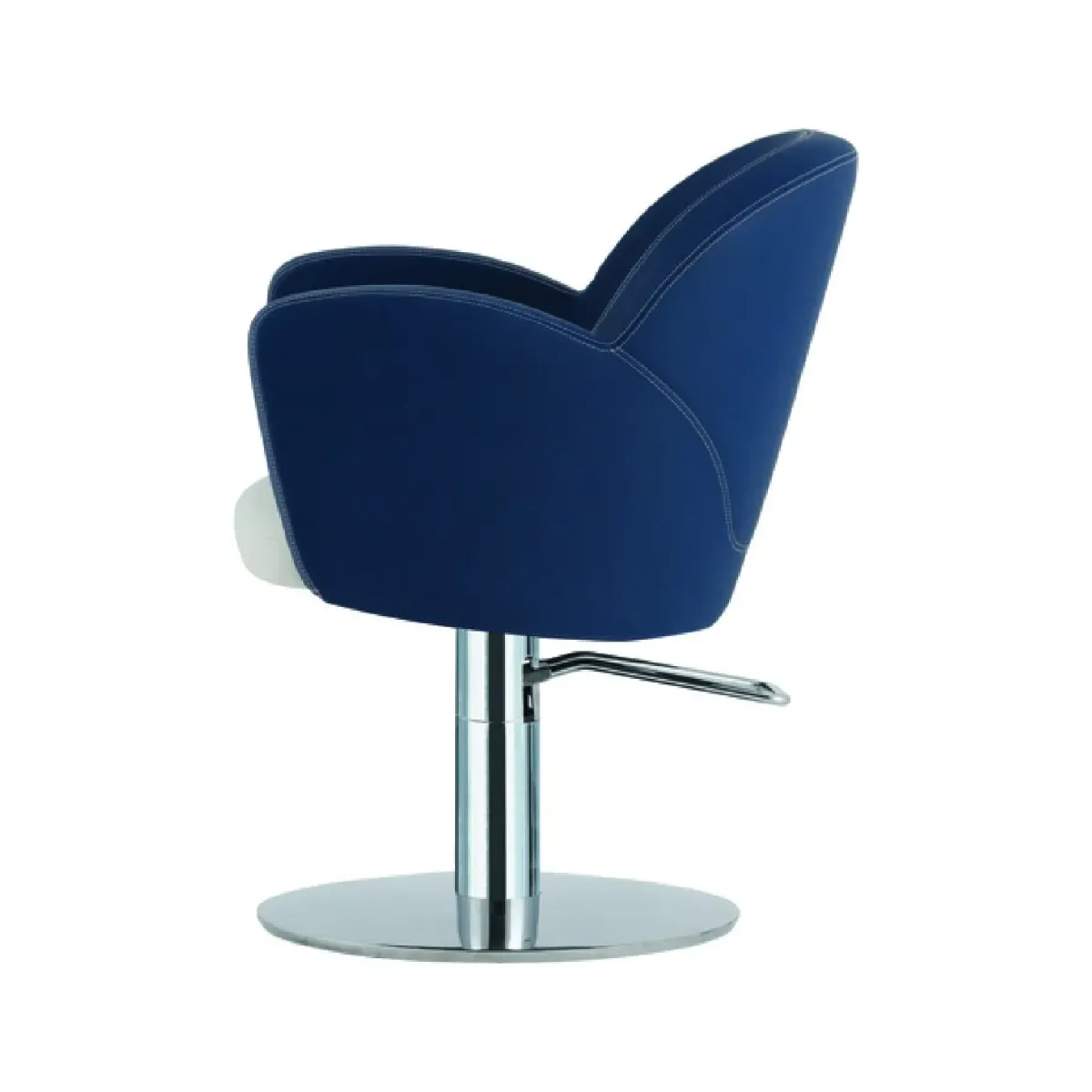La seduta e lo schienale sono in monoscocca e sono imbottiti in poliuretano schiumato con inserti in metallo, la struttura è interamente in acciaio inox con una base stabile di forma tonda dotata di pompa idraulica e freno che permette di regolare l'altezza della seduta in base all'esigenza del parrucchiere.