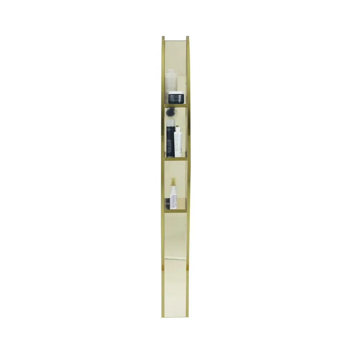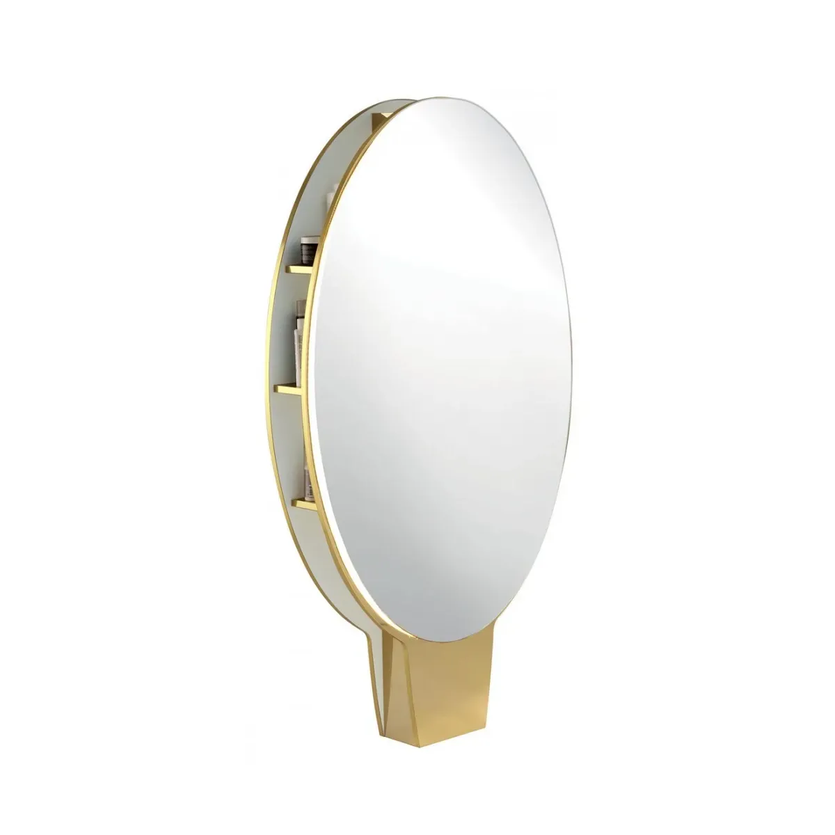 Tra i due specchi la struttura presenta delle mensole laterali molto comode e confortevoli per esporre i prodotti per lo styling dei capelli come lacche, schiume, cristalli liquidi e altri trattamenti, ma allo stesso tempo può essere anche un comodo appoggio per spazzole e pettini.