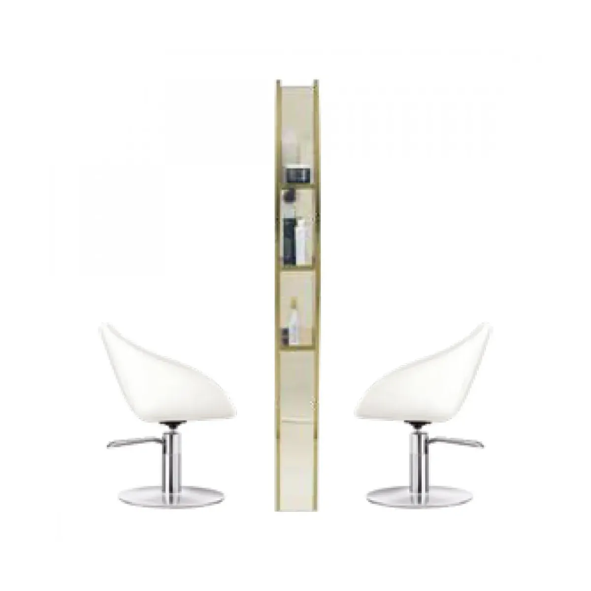 Una doppia postazione da lavoro con 2 Specchi Parrucchiere che viene di solito posizionata al centro del negozio oppure in una zona spaziosa che consente di disporre le poltrone parrucchiere ai lati.