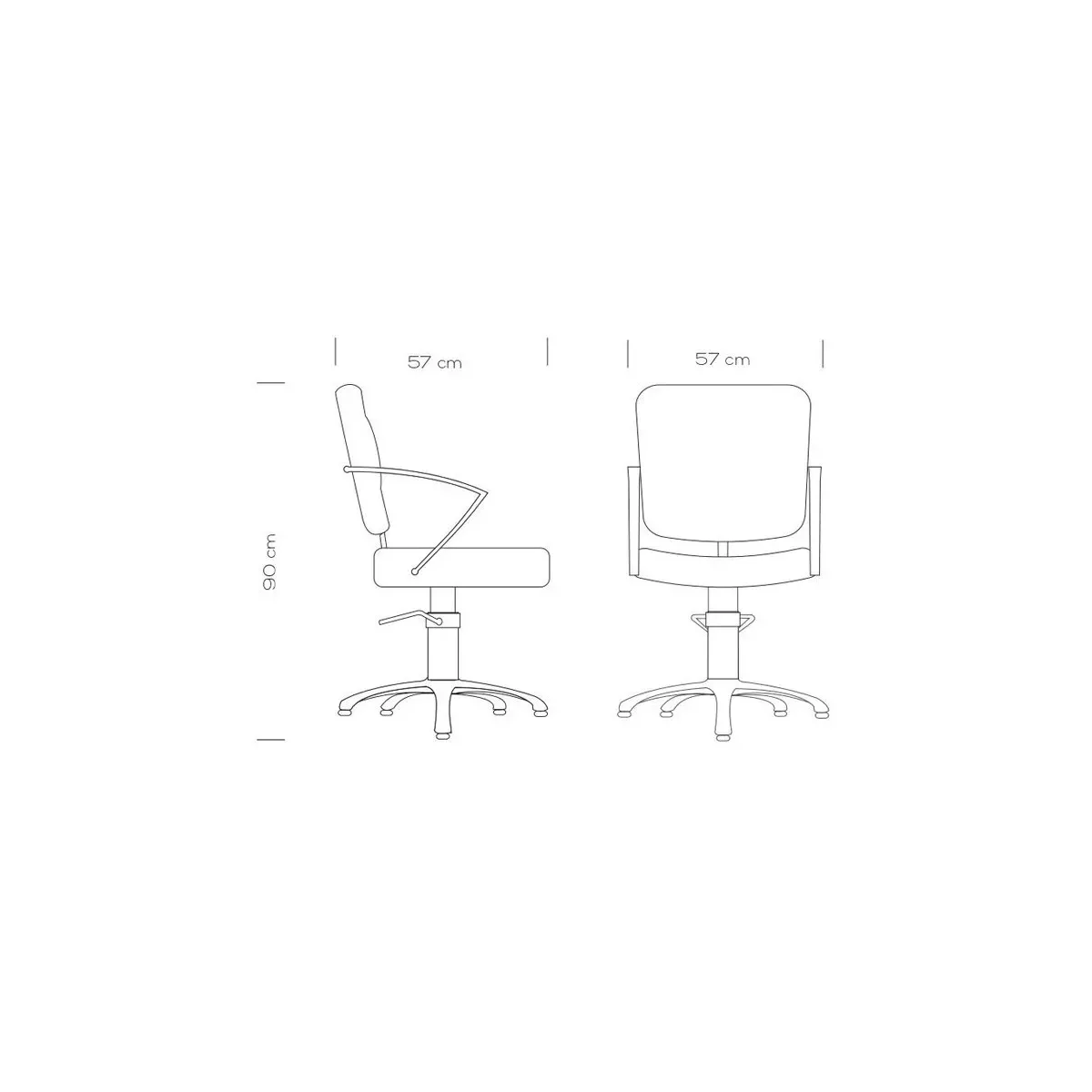 Le poltrone parrucchiere Hair Alpha sono strutturate interamente in alluminio che stabilizza la seduta formando dei comodissimi braccioli. Seduta e schienale sono separati ed entrambi sono imbottiti ad alta densità, il tutto rivestito in skai ecopelle di colore nero. La base girevole termina la struttura e comprende il meccanismo di pompa idraulica e freno che permette di regolare l'altezza della seduta.