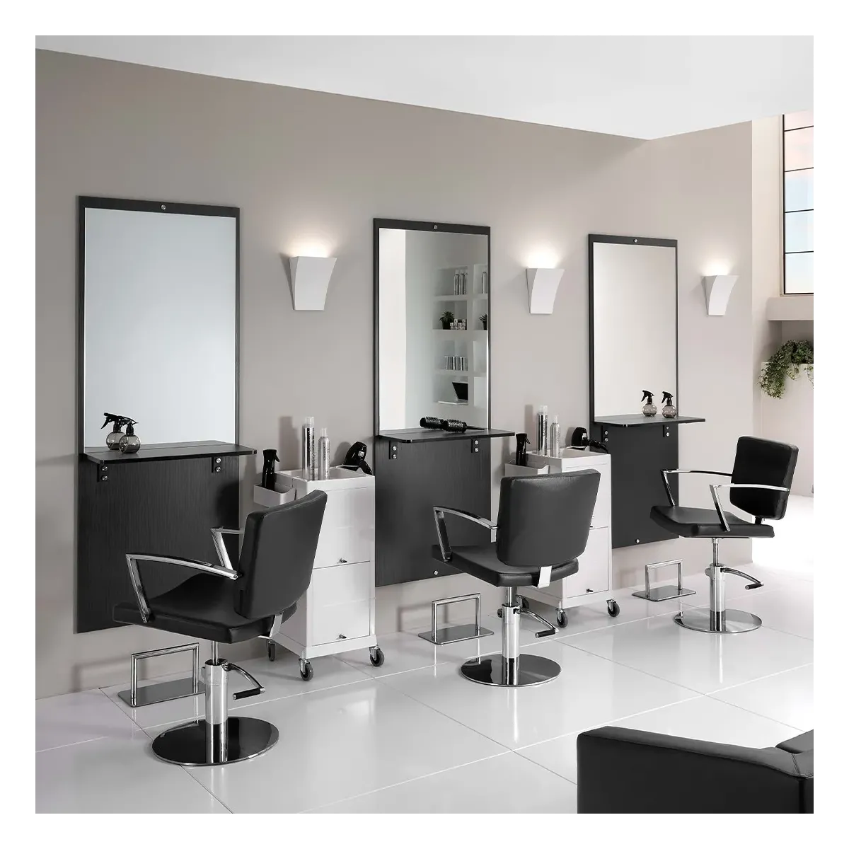 Con le nostre idee salone parrucchiere cerchiamo sempre di offrire attrezzature dalla massima qualità e confort per i professionisti dell'hairstyle a prezzi molto accessibili, infatti proponiamo 3 specchi con poggiapiedi completi di poltrone, vediamoli in dettaglio.