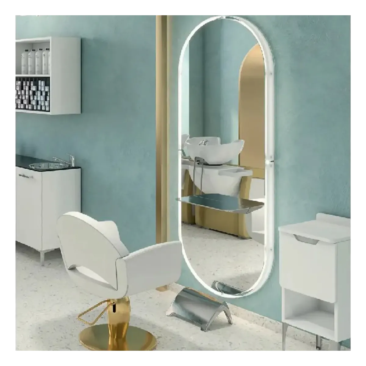 Gli specchi per parrucchiere Glam Luxury saranno la perla del tuo salone, riescono ad arredare con eleganza qualunque locale e questi modelli proposti dispongono di illuminazione a Led integrata all'interno della cornice, oltre a questo optional è aggiunto anche un pianetto in alluminio, molto comodo ai clienti per riporre i propri oggetti personali oppure a te per spazzole, phon e piastre per capelli.