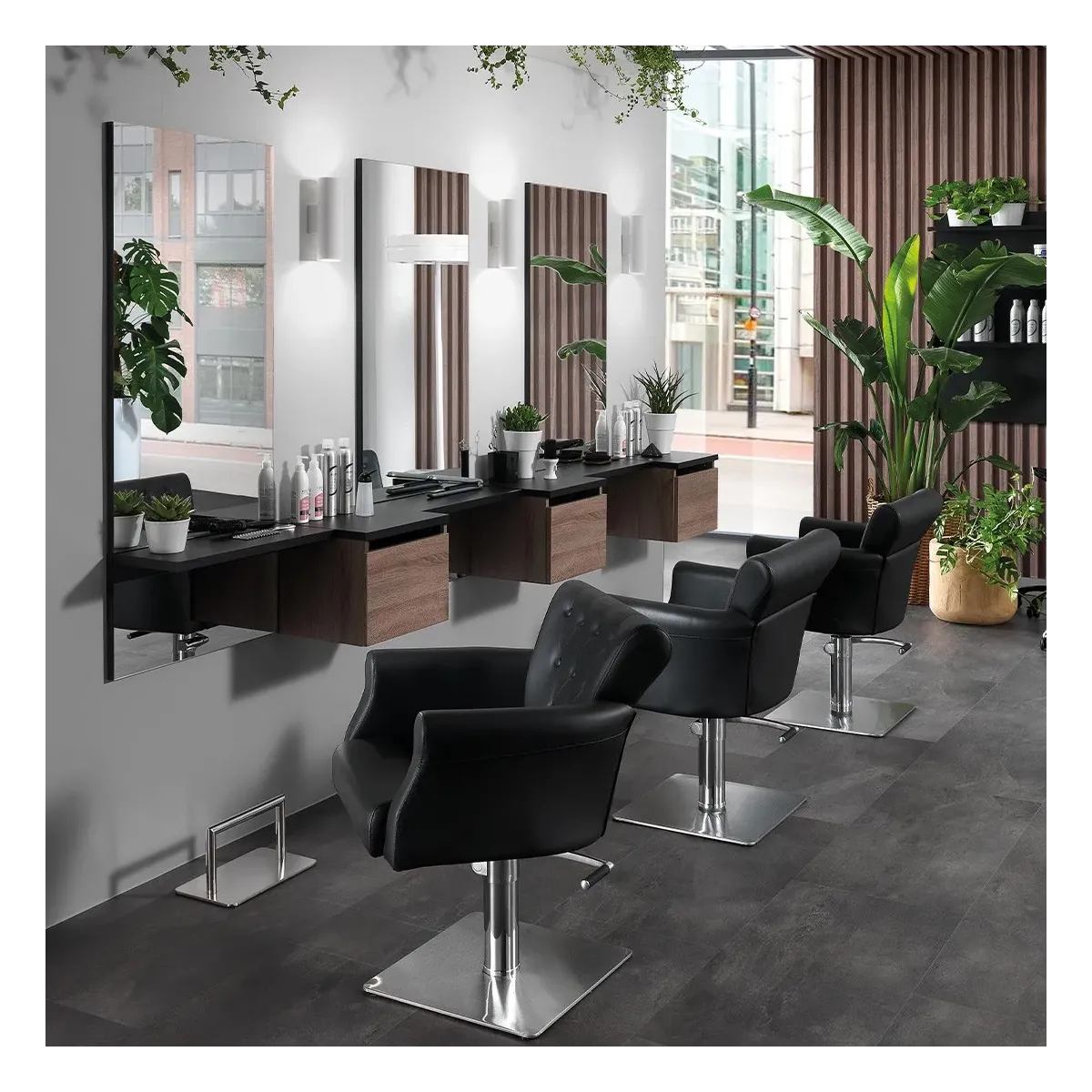 Saloni da parrucchiere completo in Offerta Lancio! Proponiamo questi fantastici complementi d'arredo per rinnovare oppure arredare da zero il tuo negozio hairstyle. Da anni siamo al fianco dei professionisti del beauty aiutandoli ad arredare i propri locali e in questa soluzione puoi vedere 3 postazioni per taglio e piega capelli complete di cassetti e poggiapiedi per estrema funzionalità, vediamoli in dettaglio.