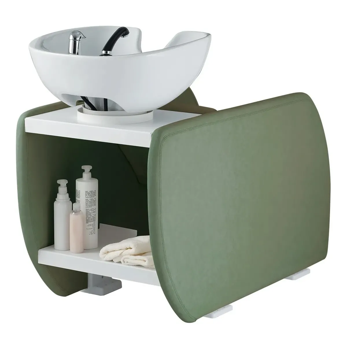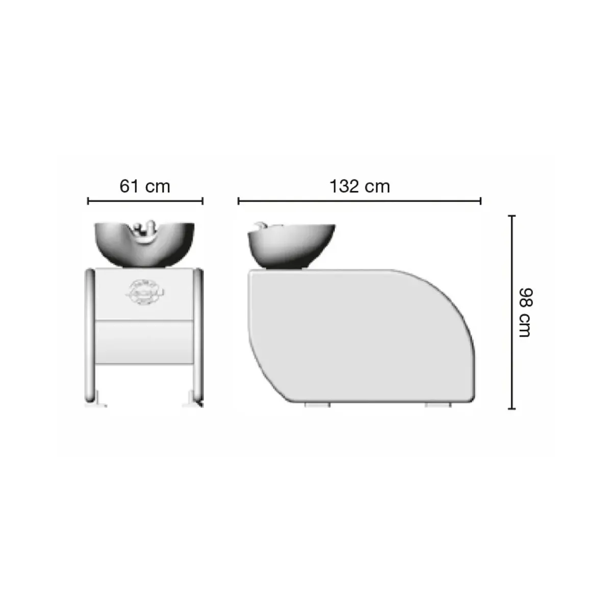I due lavatesta da parrucchiere possono essere disposti sia vicini che separati. Sono larghi 61 cm, con invece di profondità 312 cm e altezza da terra 98 cm.