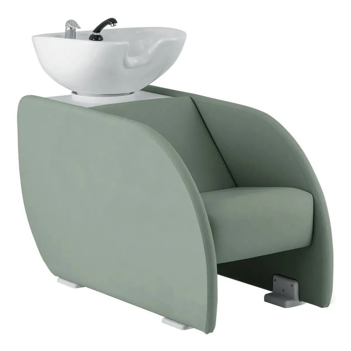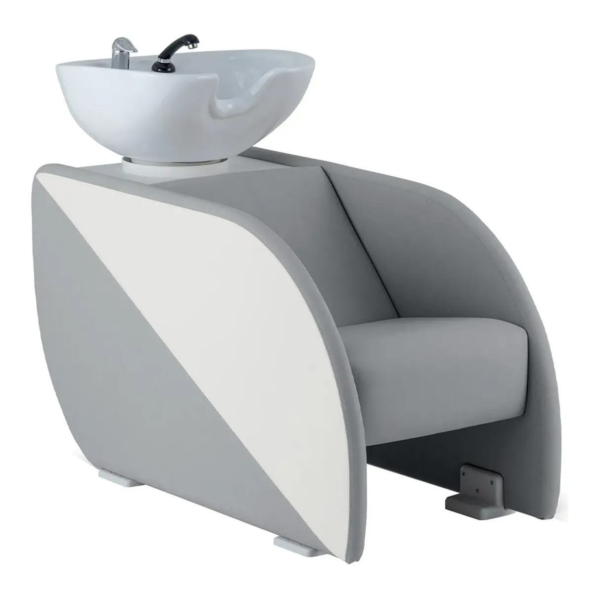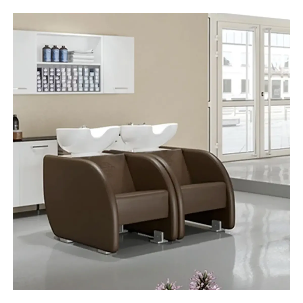 I 2 lavaggi per parrucchieri sono realizzati con fantastici inserti in legno e metallo, seduta e schienale in poliuretano schiumato con rivestimento skai di colore nero o personalizzabile in vari colori.