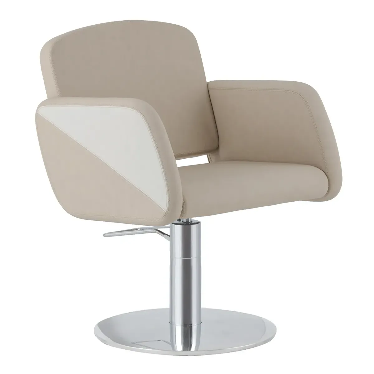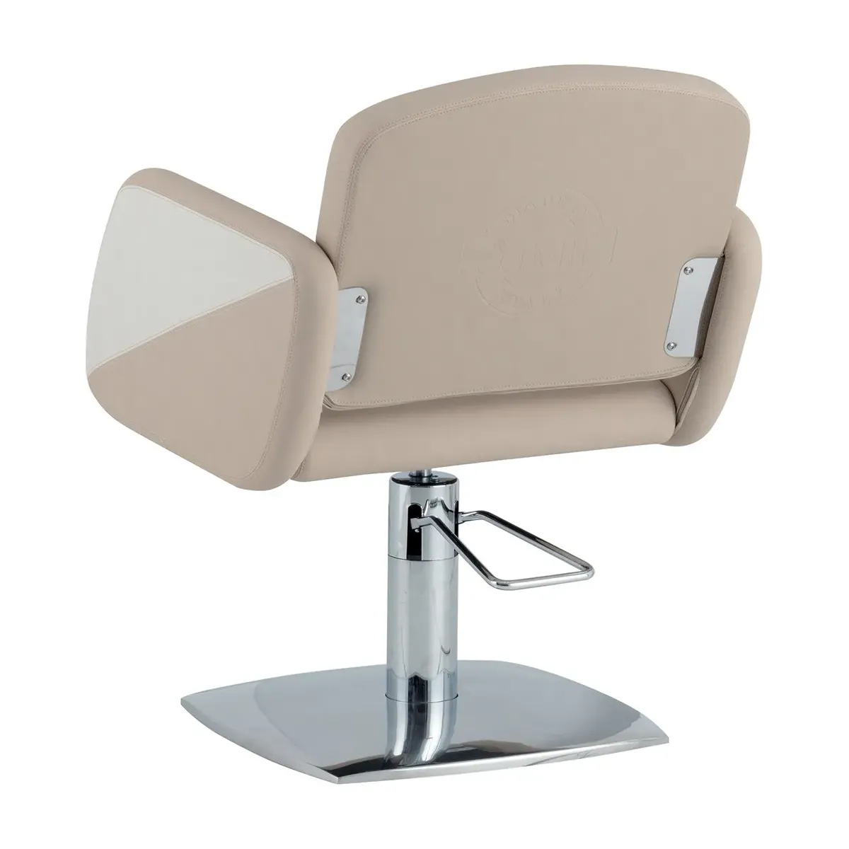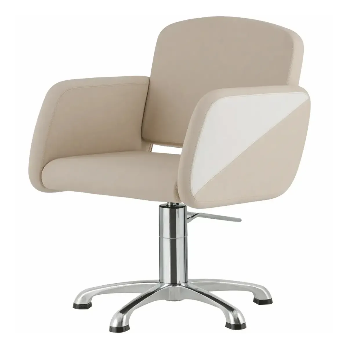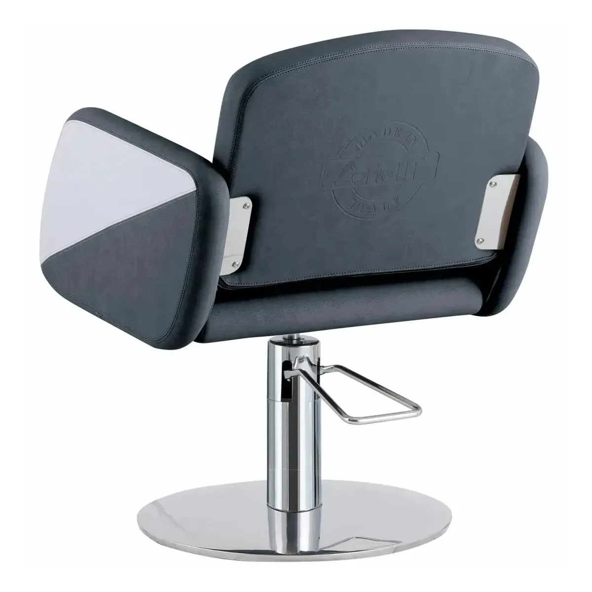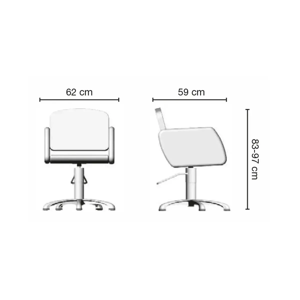La struttura della sedia parrucchiere è interamente in acciaio inox con una base stabile a 5 piedi e dotata di pompa idraulica a freno che permette di regolare l'altezza della seduta da 47 a 61 centimetri in base all'esigenza del parrucchiere, l'altezza complessiva è tra gli 83 e i 97centimetri e la distanza tra i 2 braccioli è di 62 centimetri.