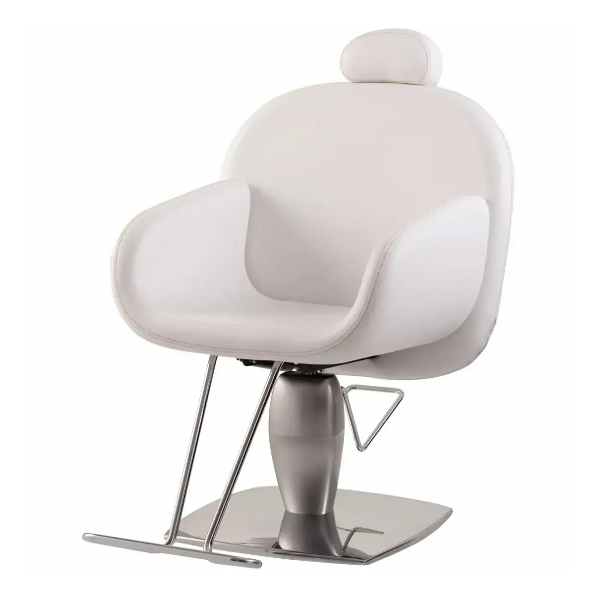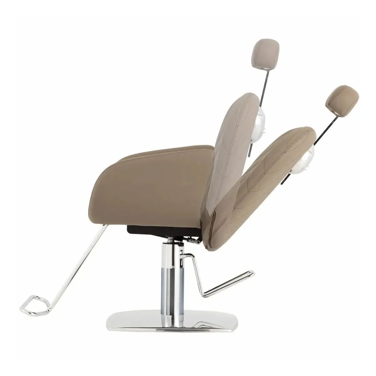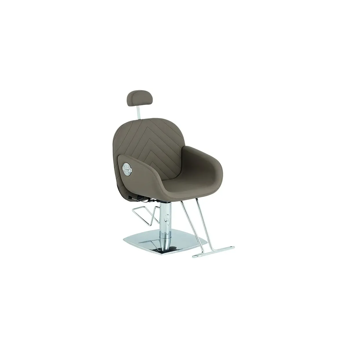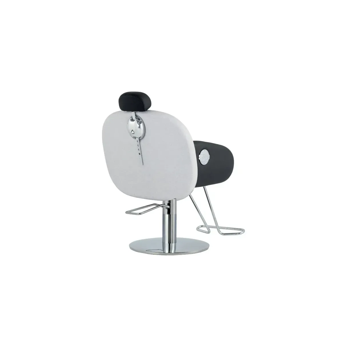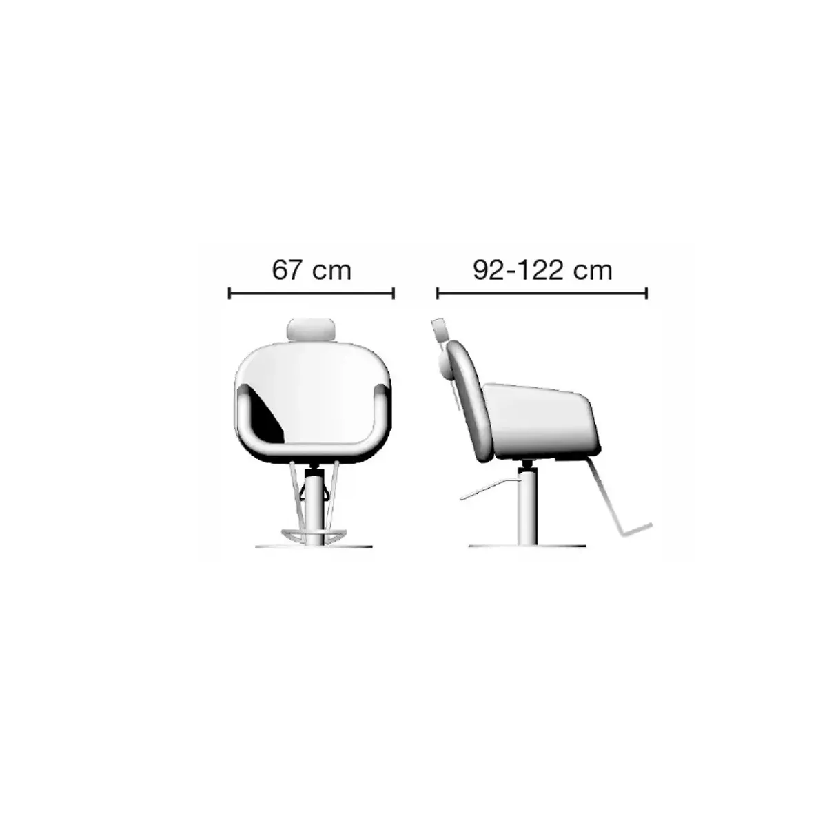 La struttura della sedia parrucchiere è interamente in acciaio inox con una base quadrata e dotata di pompa idraulica a freno che permette di regolare l'altezza della seduta in base all'esigenza del parrucchiere, la distanza tra i 2 braccioli è di 67 centimetri.