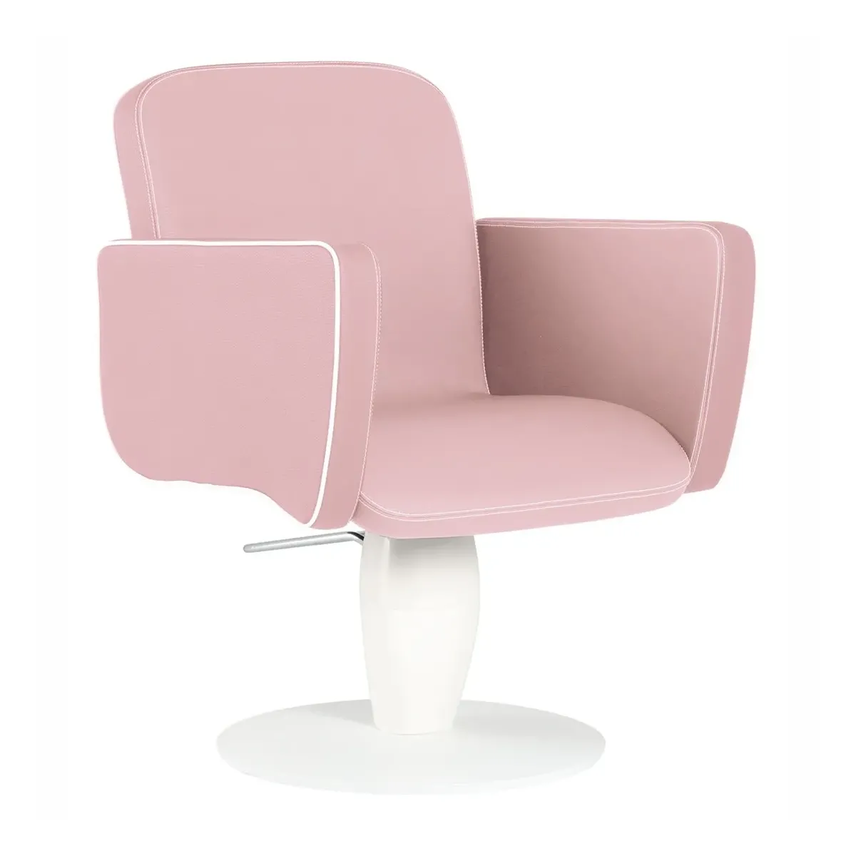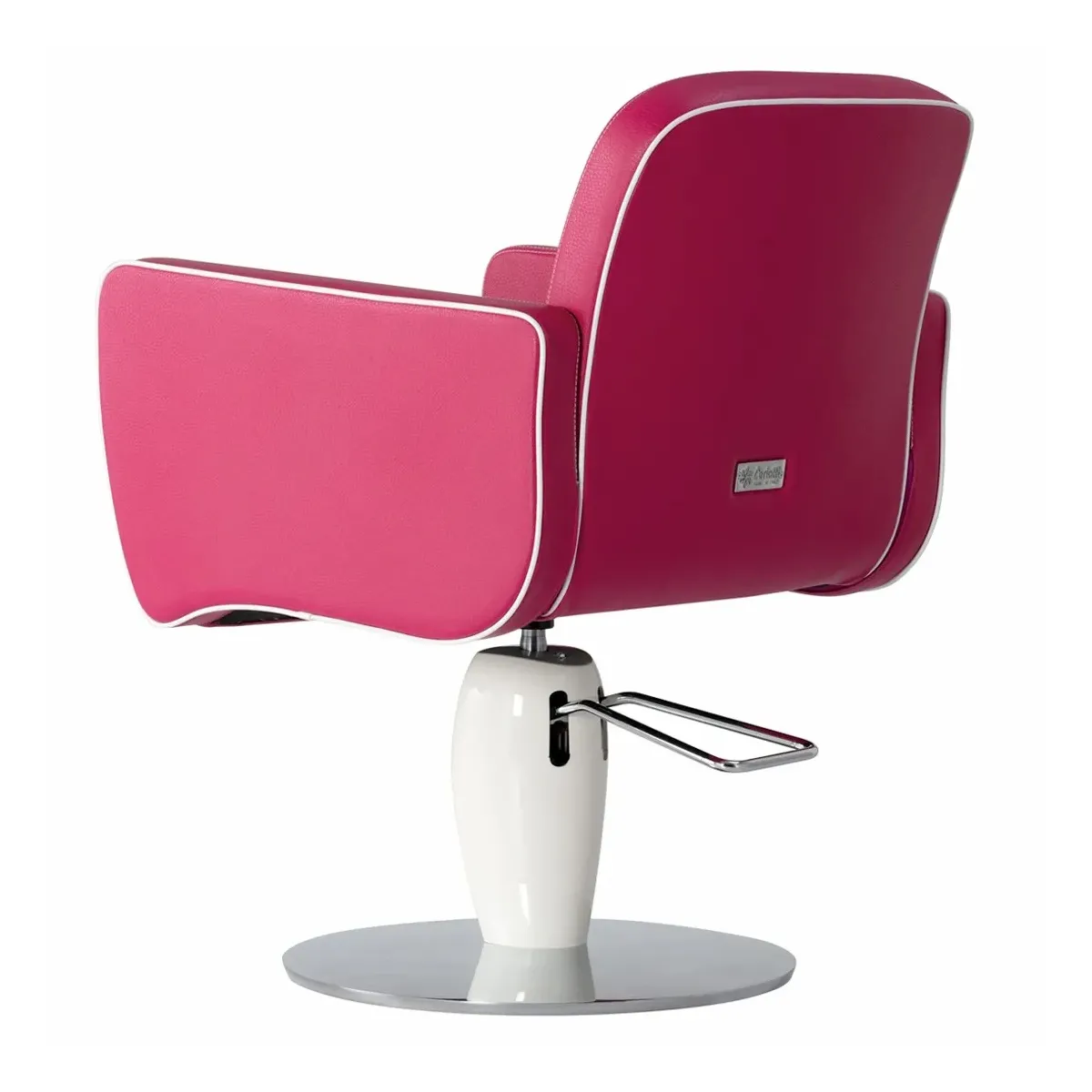 La struttura della sedia parrucchiere è interamente in acciaio inox con una base quadrata e dotata di pompa idraulica a freno che permette di regolare l'altezza della seduta in base all'esigenza del parrucchiere, la distanza tra i 2 braccioli è di 64 centimetri.