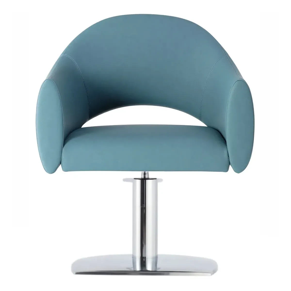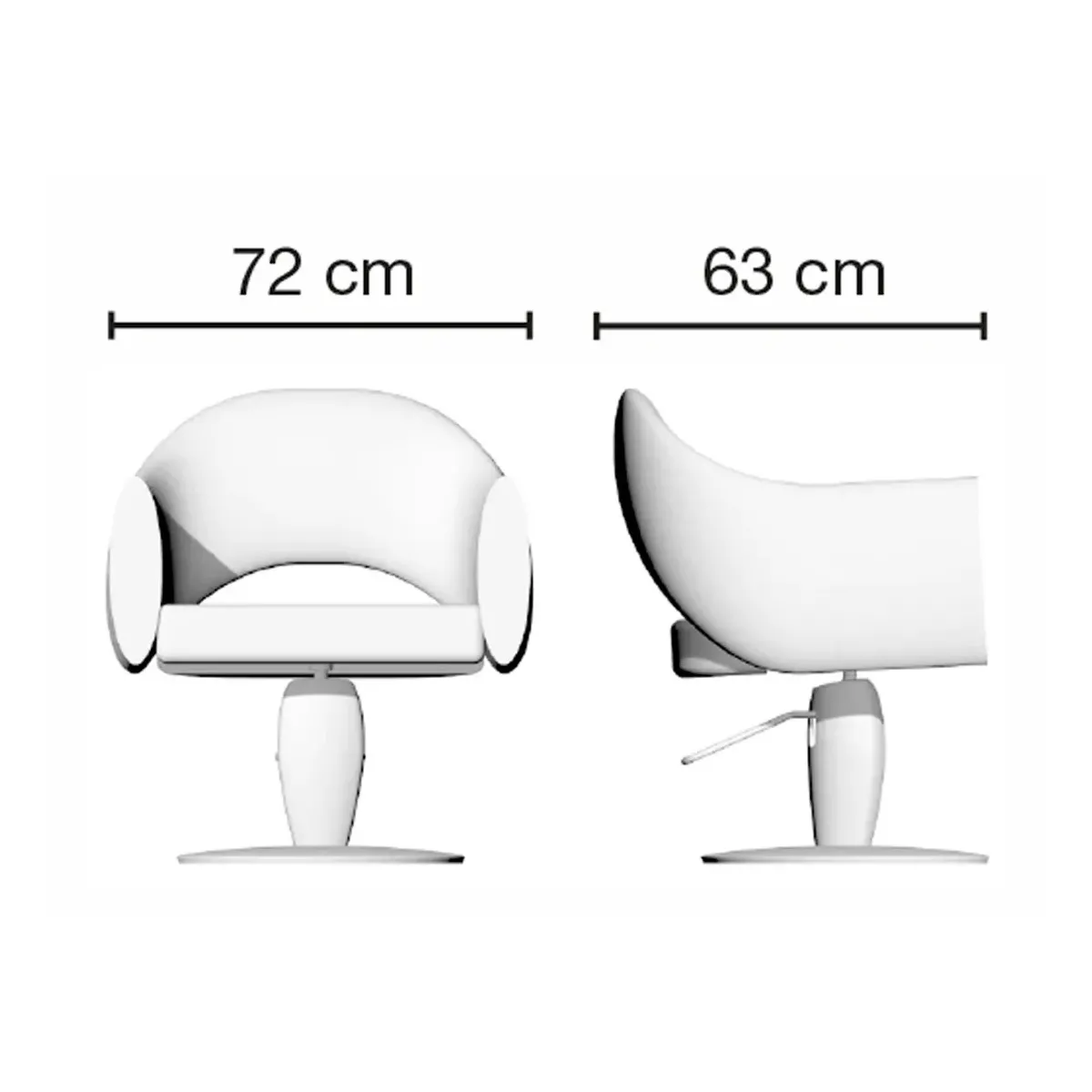 La struttura della sedia parrucchiere è interamente in acciaio inox con una base quadrata e dotata di pompa idraulica a freno che permette di regolare l'altezza della seduta in base all'esigenza del parrucchiere, la distanza tra i 2 braccioli è di 72 centimetri.