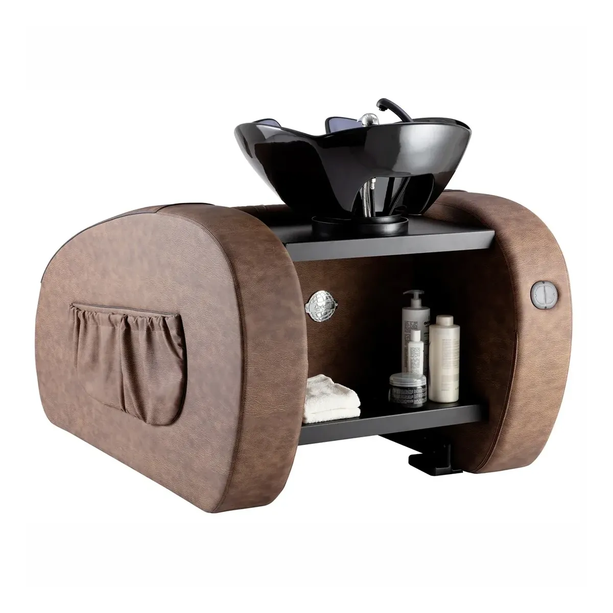 I 3 Lavatesta Parrucchiere Ceriotti King sono realizzati con solida struttura in legno e acciaio e seduta e braccioli con rivestimento in Sky ecopelle personalizzabile tra le colorazioni in foto. E' compreso di vasca basculante in ceramica e doccetta con miscelatore. Nel retro del lavatesta, sotto il lavabo, un comodo ripiano per appoggiare attrezzi e flaconi.