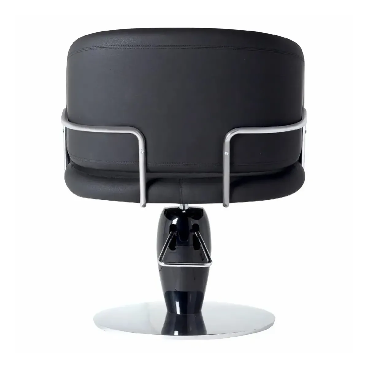 La struttura della sedia parrucchiere è interamente in acciaio inox con una base quadrata e dotata di pompa idraulica a freno che permette di regolare l'altezza della seduta in base all'esigenza del parrucchiere, la distanza tra i 2 braccioli è di 65,5 centimetri.