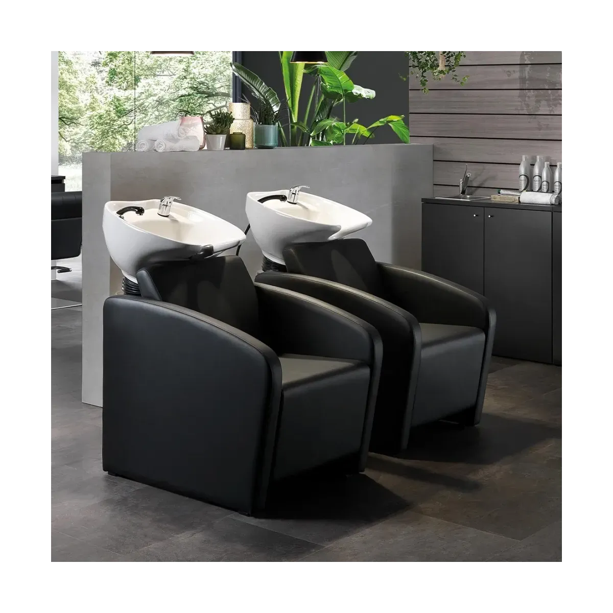Lavaggi Parrucchieri dal design moderno realizzati pensando di offrire più confort possibile ai tuoi clienti. La struttura è fatta in acciaio per garantire stabilità e durata nel tempi, mentre la seduta e lo schienale hanno un'imbottitura ad alta densità con rivestimento in skai ecopelle di colore nero. Infine i lavatesta per parrucchieri sono entrambi dotati di una vasca basculante in ceramica completa di doccetta con miscelatore.