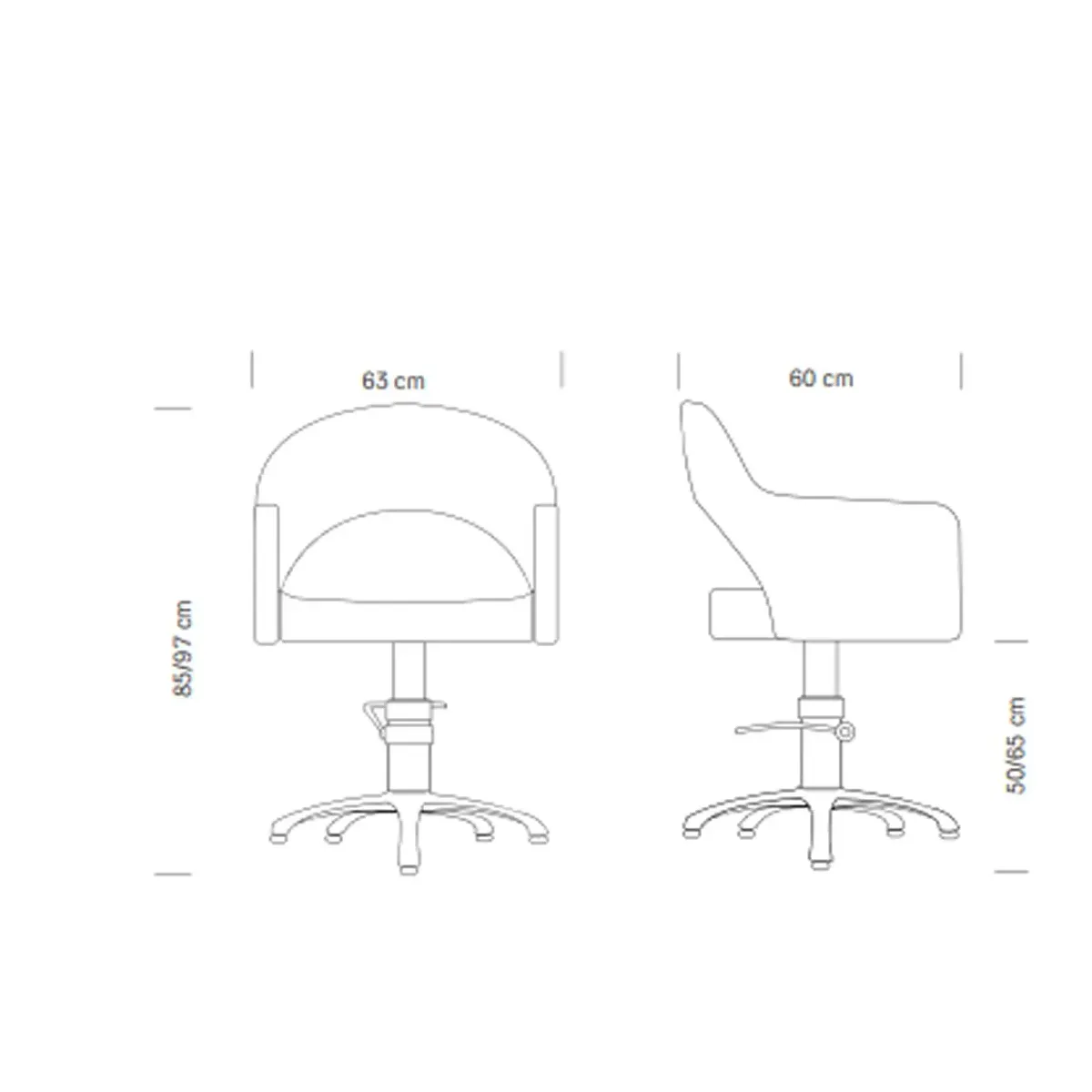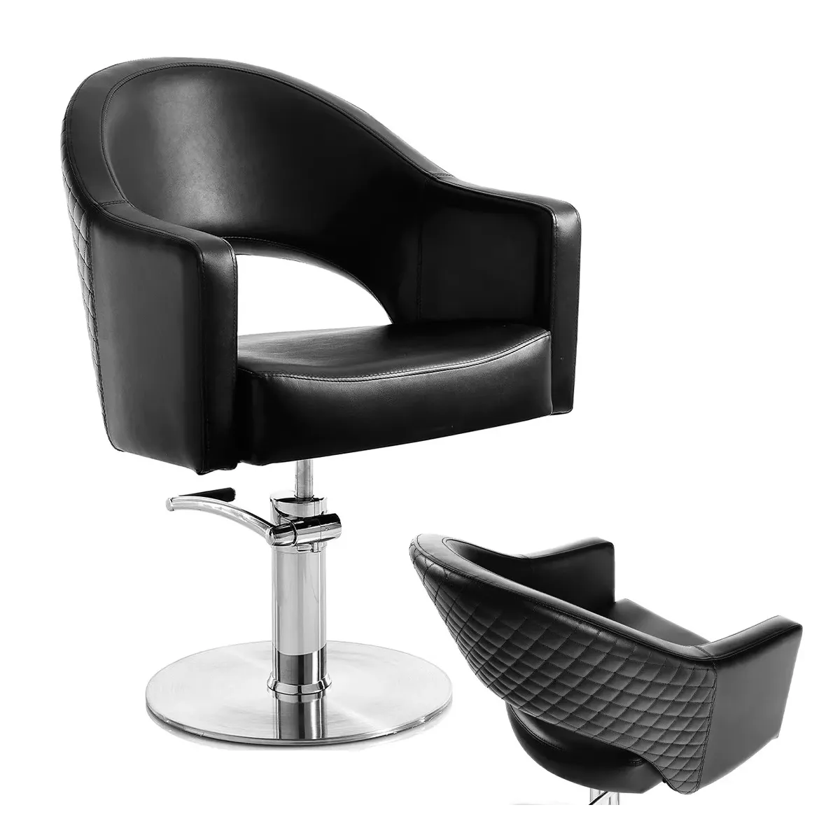 Le 2 poltrone parrucchieri Hair Paris si distinguono per il suo design elegante e raffinato, perfetto per saloni di bellezza di alto livello. La seduta, ampia e confortevole, è rivestita in similpelle nera con una raffinata trapuntatura a rombi sullo schienale, che aggiunge un tocco di classe. I braccioli, bassi e avvolgenti, offrono un supporto confortevole durante il servizio. La base rotonda in metallo cromato, stabile e robusta, garantisce sicurezza e durata nel tempo. Il meccanismo di sollevamento idraulico, azionabile tramite una leva laterale, permette di regolare l'altezza della seduta, adattandosi alle esigenze di ogni cliente. Un poggiapiedi cromato, integrato nella base, offre un ulteriore elemento di comfort. Questa poltrona è ideale per parrucchieri che desiderano offrire ai propri clienti un'esperienza di lusso e relax.