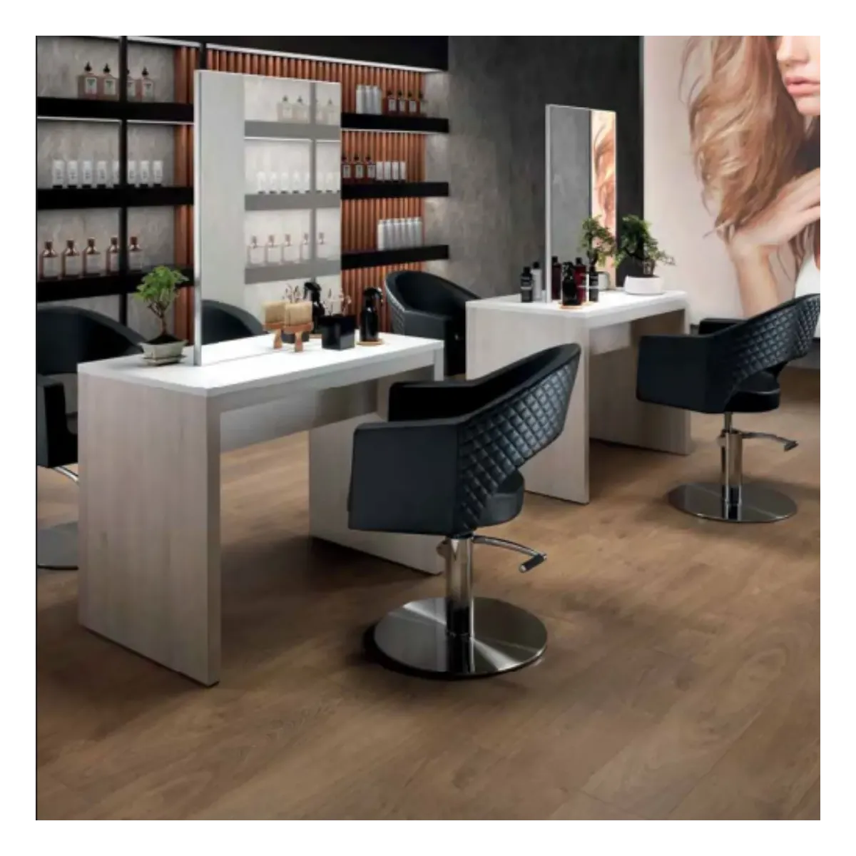 Questi 2 specchi parrucchiere a doppia postazione si distingue per il suo design elegante e funzionale, ideale per saloni di bellezza moderni. La struttura, in legno chiaro con finitura effetto marmo, conferisce un tocco di raffinatezza all'ambiente. Il ripiano centrale, ampio e luminoso, offre spazio per appoggiare strumenti e prodotti di styling. Lo specchio rettangolare, alto e ben illuminato, permette ai clienti di osservare il risultato del lavoro da diverse angolazioni. La base, solida e stabile, garantisce sicurezza durante l'utilizzo. Questo specchio è perfetto per saloni che desiderano creare un'atmosfera accogliente e professionale, offrendo ai propri clienti un'esperienza di alto livello.