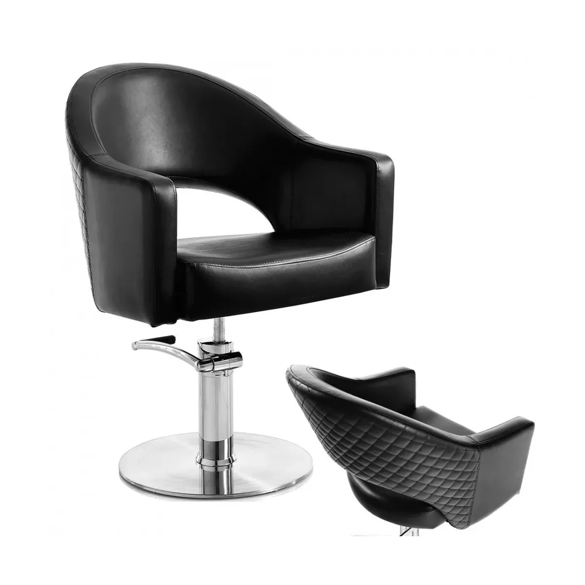 Le 4 poltrone parrucchieri Hair Paris si distinguono per il suo design elegante e raffinato, perfetto per saloni di bellezza di alto livello. La seduta, ampia e confortevole, è rivestita in similpelle nera con una raffinata trapuntatura a rombi sullo schienale, che aggiunge un tocco di classe. I braccioli, bassi e avvolgenti, offrono un supporto confortevole durante il servizio. La base rotonda in metallo cromato, stabile e robusta, garantisce sicurezza e durata nel tempo. Il meccanismo di sollevamento idraulico, azionabile tramite una leva laterale, permette di regolare l'altezza della seduta, adattandosi alle esigenze di ogni cliente. Un poggiapiedi cromato, integrato nella base, offre un ulteriore elemento di comfort. Questa poltrona è ideale per parrucchieri che desiderano offrire ai propri clienti un'esperienza di lusso e relax.