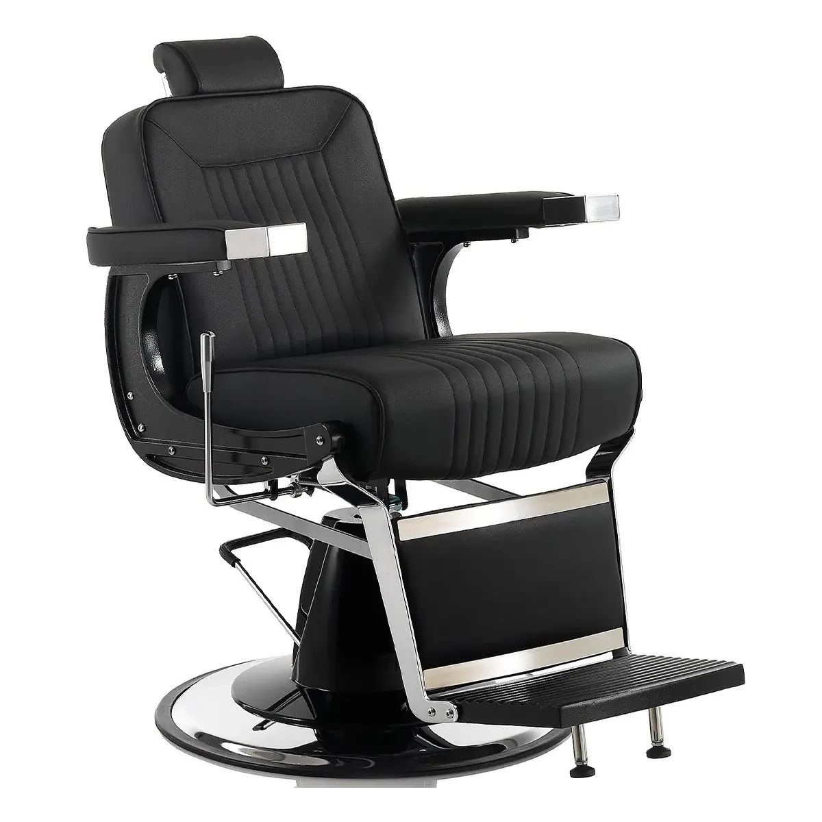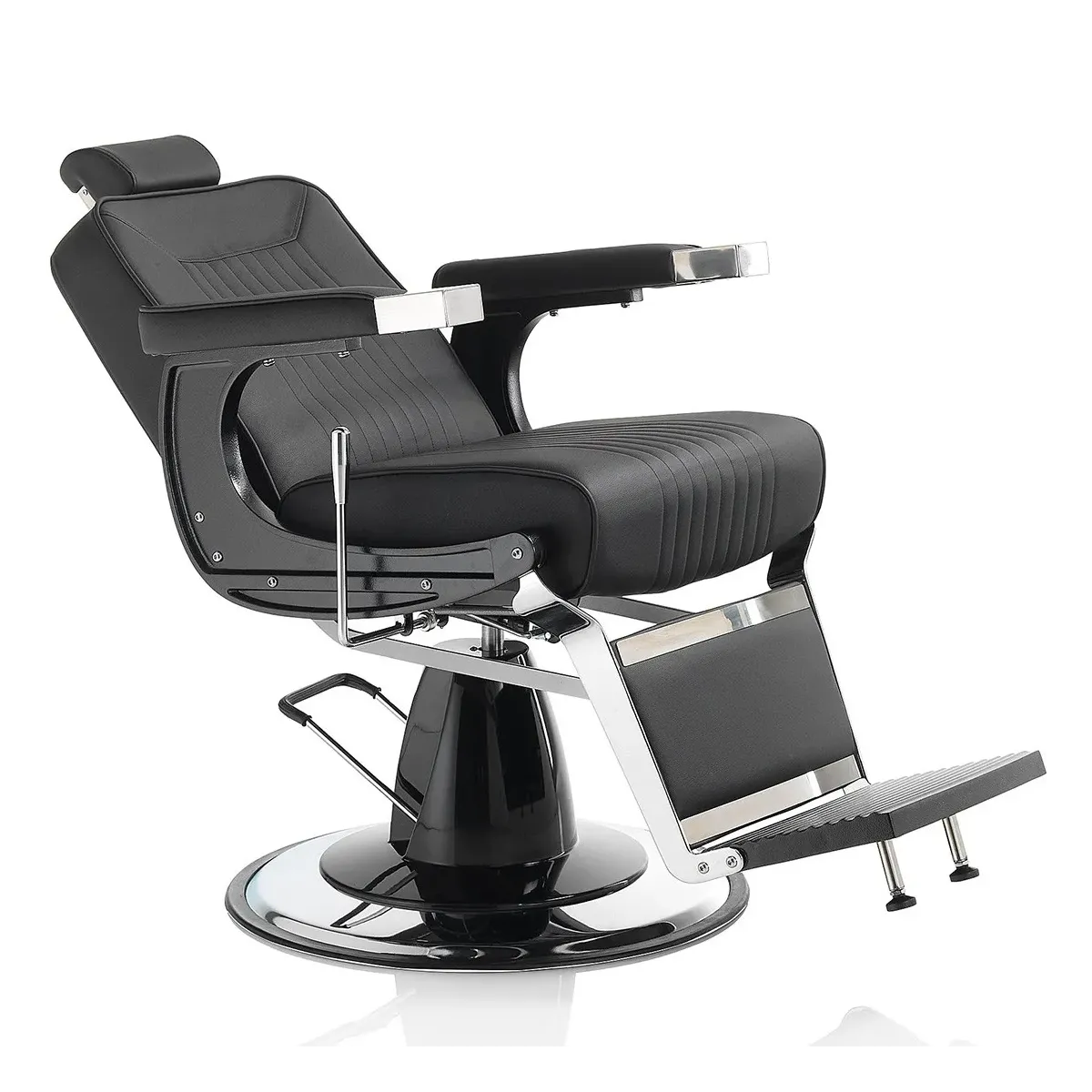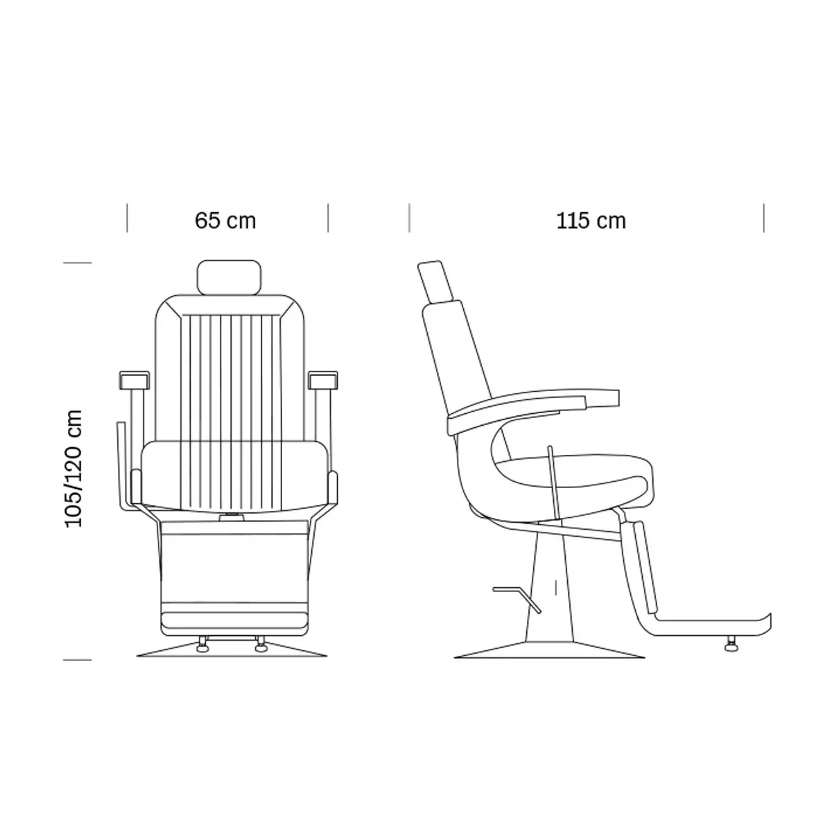 Poltrona da Barbiere Hair Corsaro con ampia seduta e struttura in acciaio che dona stabilità e assicura un'impeccabile duratura nel tempo. La base è dotata di pompa idraulica per regolare l'altezza ed il freno, inoltre è presente una leva in modo da reclinare il cliente ed effettuare comodamente i servizi di rasatura nel tuo barber shop. La sedia barbiere inoltre possiede anche un poggiatesta regolabile imbottito ad alta densità, proprio come la seduta e lo schienale, infine il tutto è rivestito in skai ecopelle di colore nero.