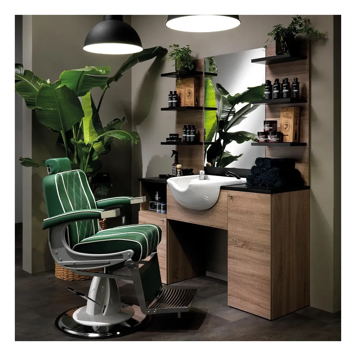 Arredamento barber shop ideato per fornire a te barbiere una postazione da lavoro perfetta. Con questa soluzione sarai in grado di effettuare tutti il lavoro necessario in salone, addirittura effettuando lo shampoo utilizzando il lavandino completo di doccetta con miscelatore inclusi; ma anche grazie alla poltrona barbiere reclinabile che ti aiuterà a procedere senza particolari problemi.