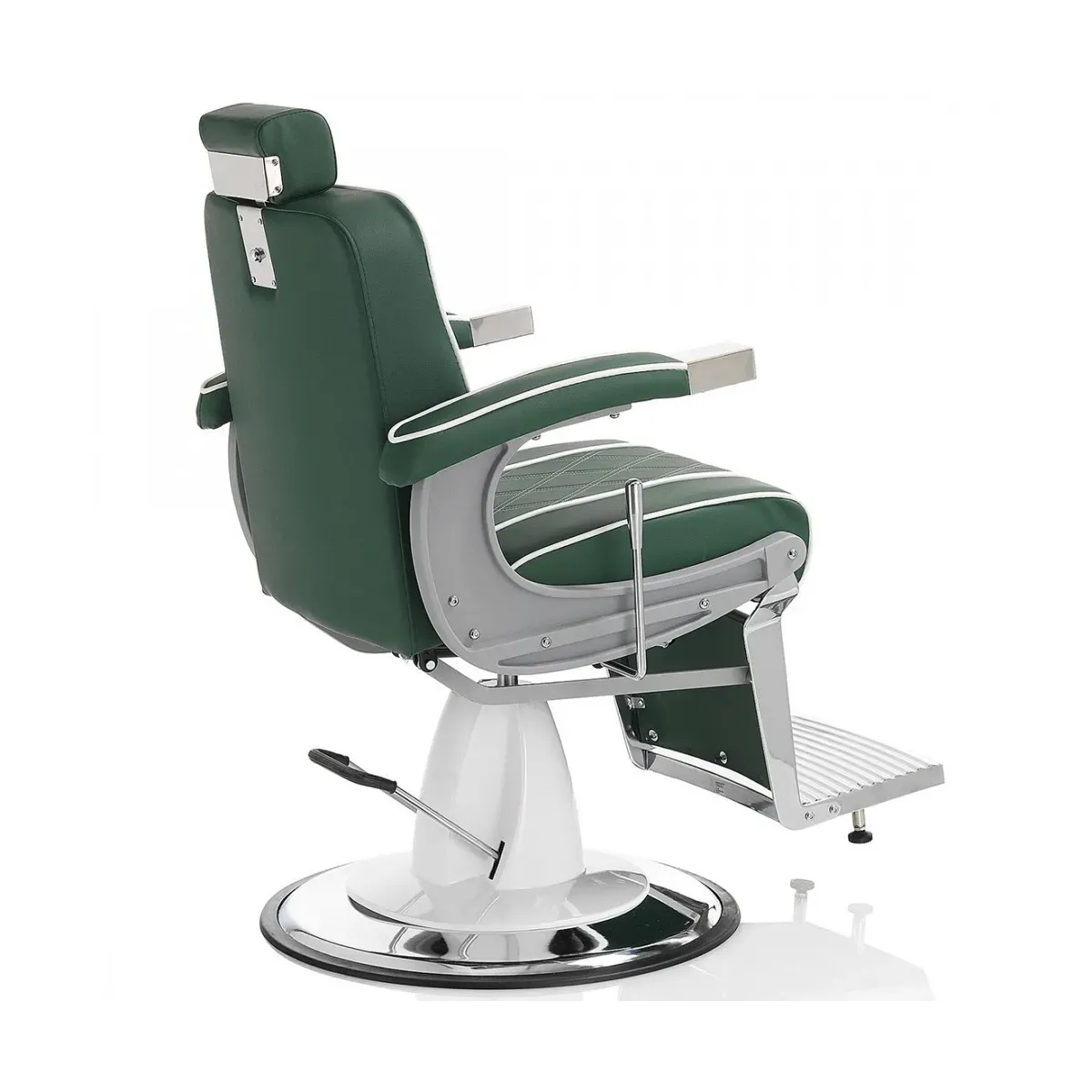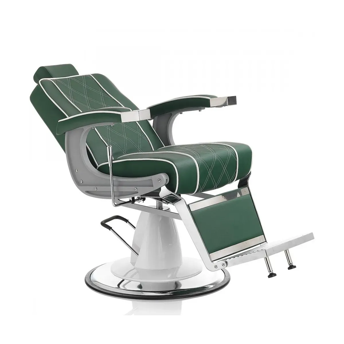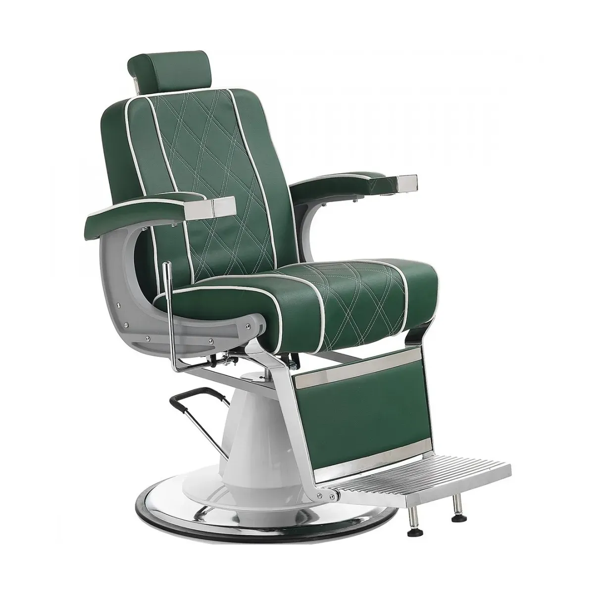 Poltrona da Barbiere dallo splendido design che presenta dei ricami sulla seduta e sullo schienale. Struttura solida e stabile in acciaio cromato con base girevole, pompa idraulica e leva per l'inclinazione dello schienale. La sedia barbiere è dotata anche di comodissimi braccioli e poggiatesta regolabile, inoltre scegliendo Hair Granada non rinuncerai nemmeno al confort per i tuoi clienti in quanto è realizzata con un'imbottitura ad alta densità rivestita in skai ecopelle con colore a scelta tra nero e verde.