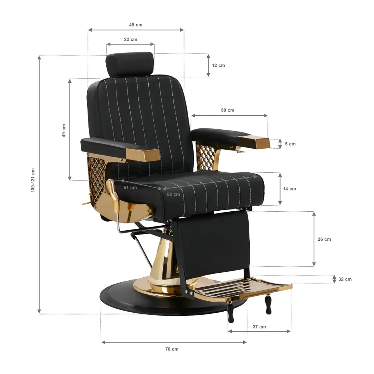 Eleva l'esperienza dei tuoi clienti con la Poltrona Barbiere Professionale Nera e Oro Luxury Beauty New, un'opera d'arte che unisce design sofisticato e funzionalità avanzate. Questa poltrona è il simbolo di lusso e comfort, perfetta per i saloni di barbiere che desiderano offrire un servizio di alta qualità.