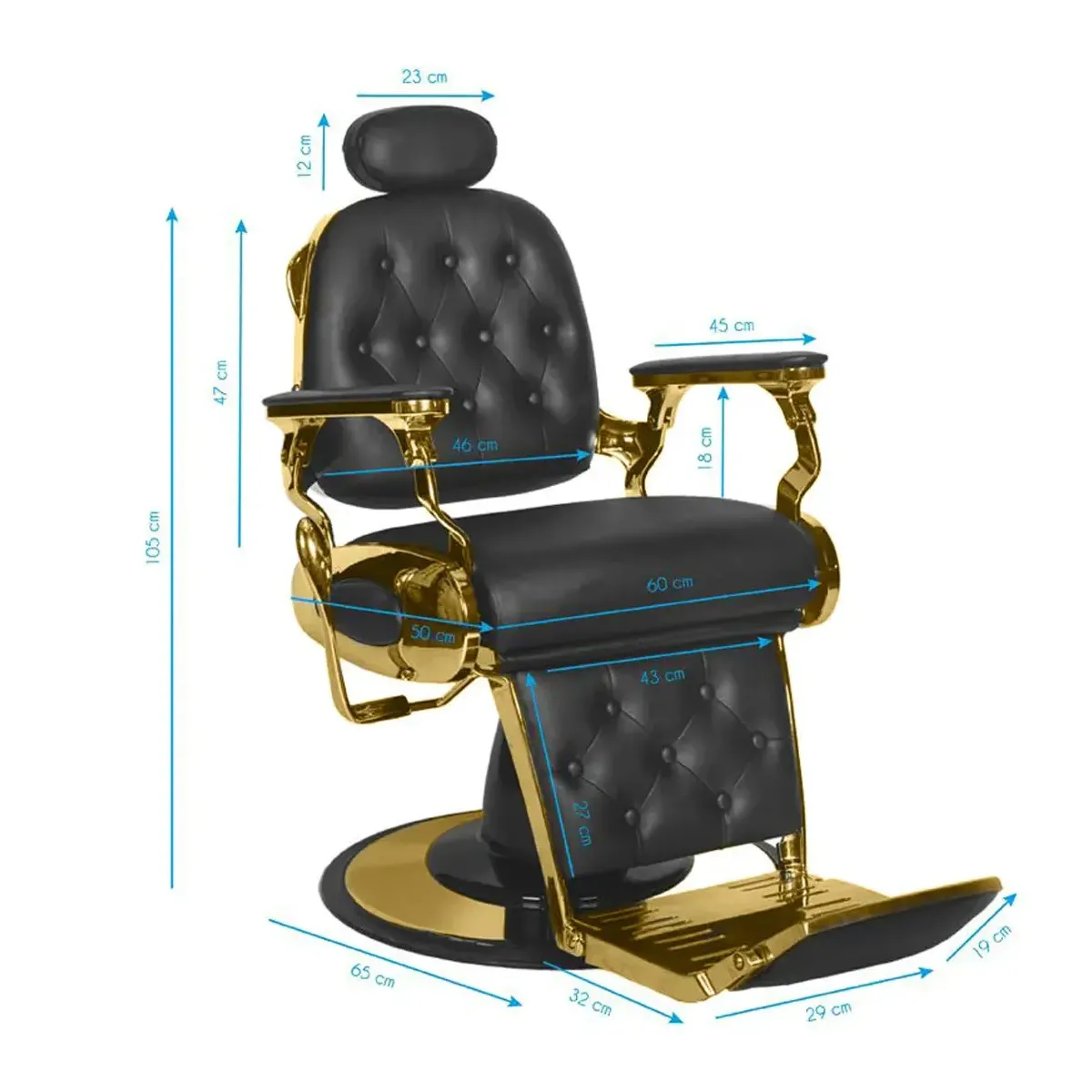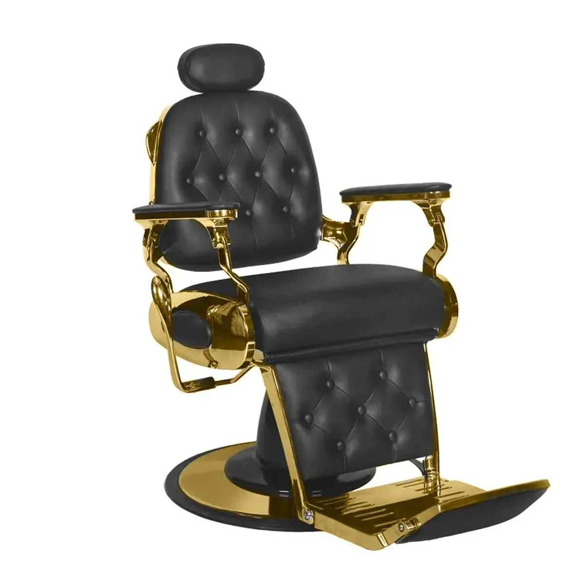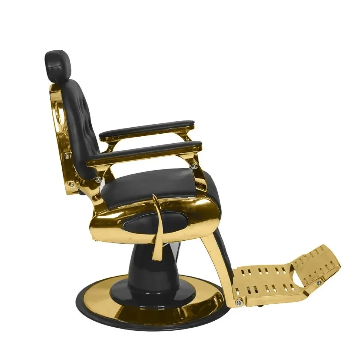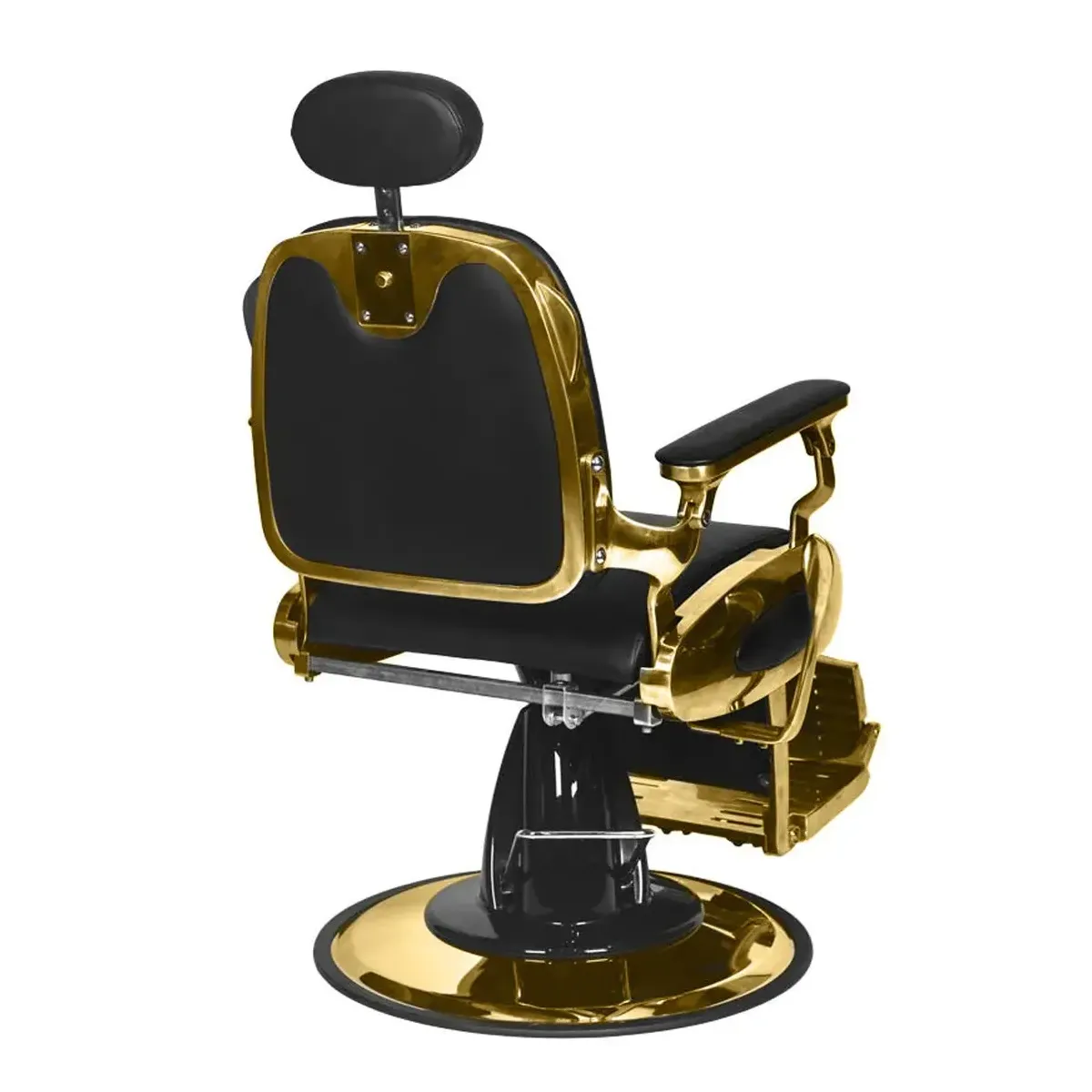 Design Elegante: La struttura in metallo dorato conferisce alla poltrona un aspetto regale e sofisticato, perfetto per saloni di lusso e barber shop di tendenza.