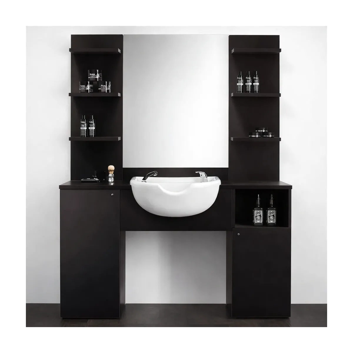 La sua struttura robusta in legno garantisce durabilità e resistenza nel tempo, elementi essenziali per un ambiente di lavoro dinamico e frequentato. Il design intelligente integra un comodo lavello per shampoo, ottimizzando i tempi e gli spostamenti all'interno del tuo spazio. Questo dettaglio funzionale permette di offrire ai tuoi clienti un servizio completo e confortevole direttamente alla postazione, migliorando l'efficienza del tuo lavoro e l'esperienza complessiva della clientela.