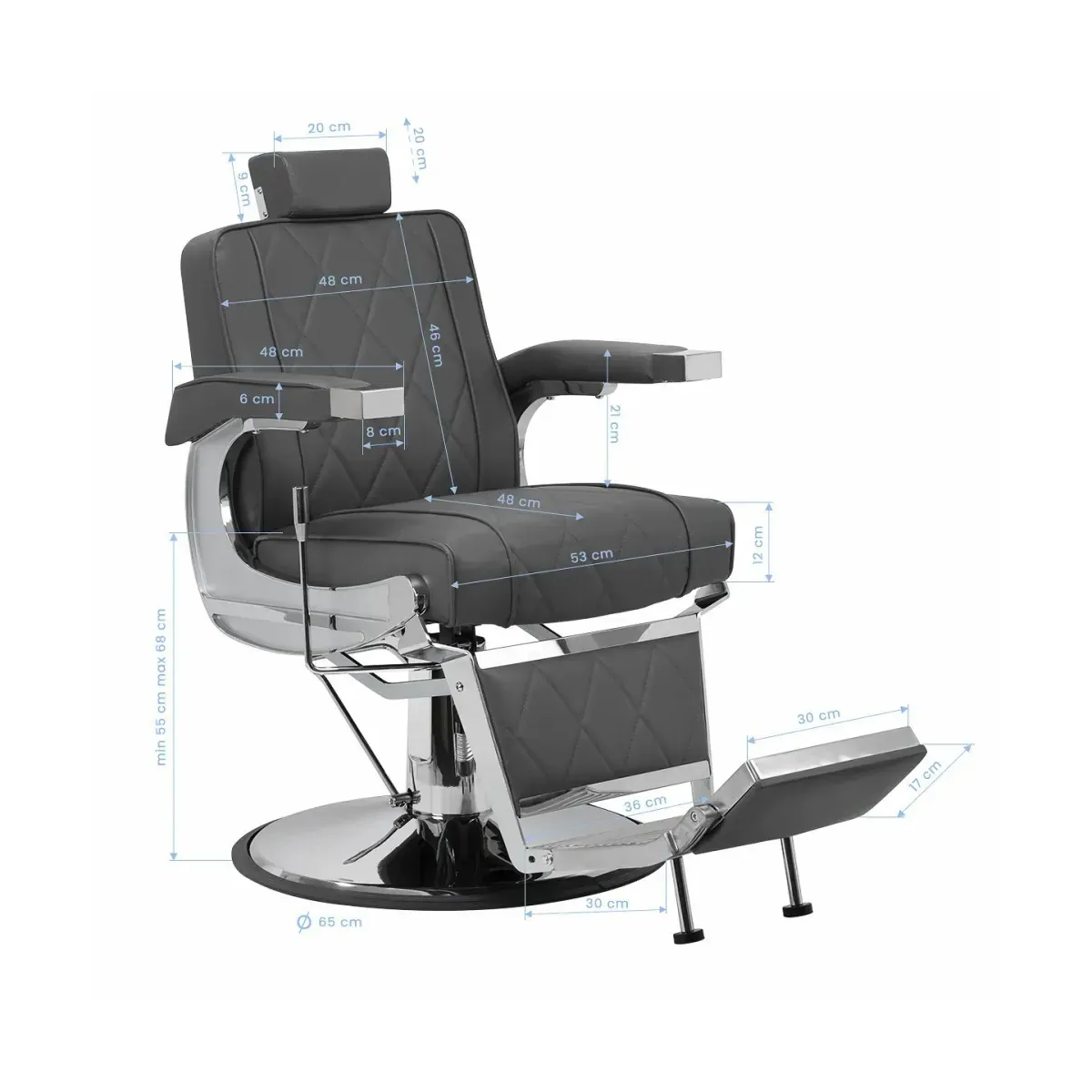 Design Ergonomico: La poltrona è stata progettata per garantire il massimo comfort sia per il cliente che per il barbiere. Le sue forme sinuose e l'imbottitura di alta qualità offrono un supporto ottimale durante il taglio e la rasatura.