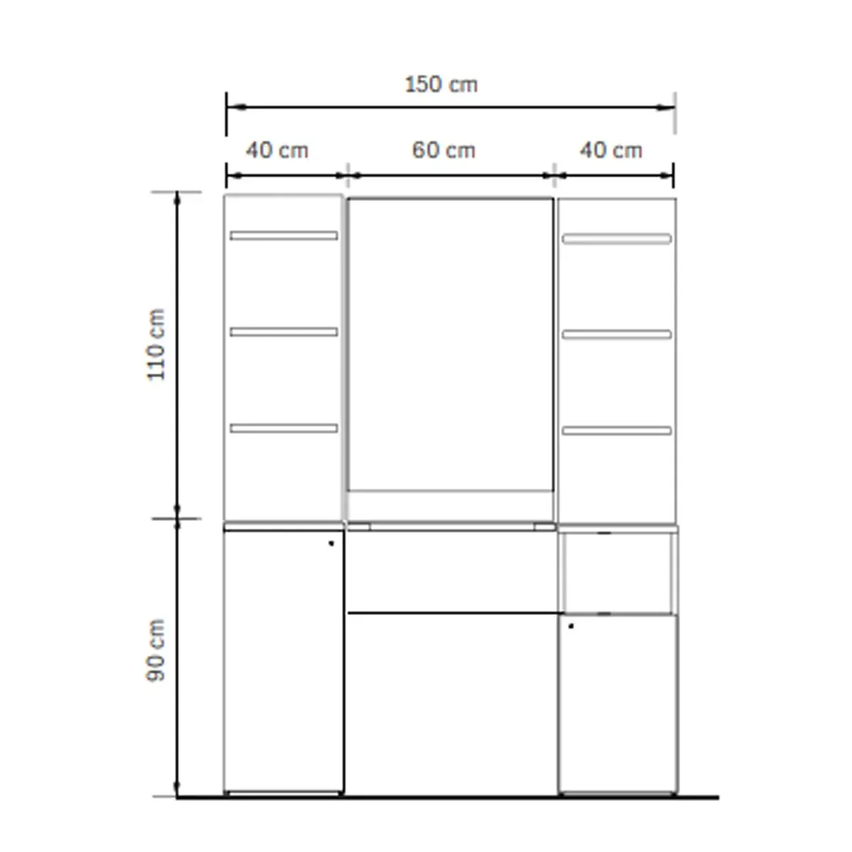 Vani Inferiori: La parte inferiore del mobile è composta da due vani laterali chiusi, ideali per riporre asciugamani, prodotti e altri materiali di consumo. Un piccolo cassetto è visibile sotto lo specchio centrale.