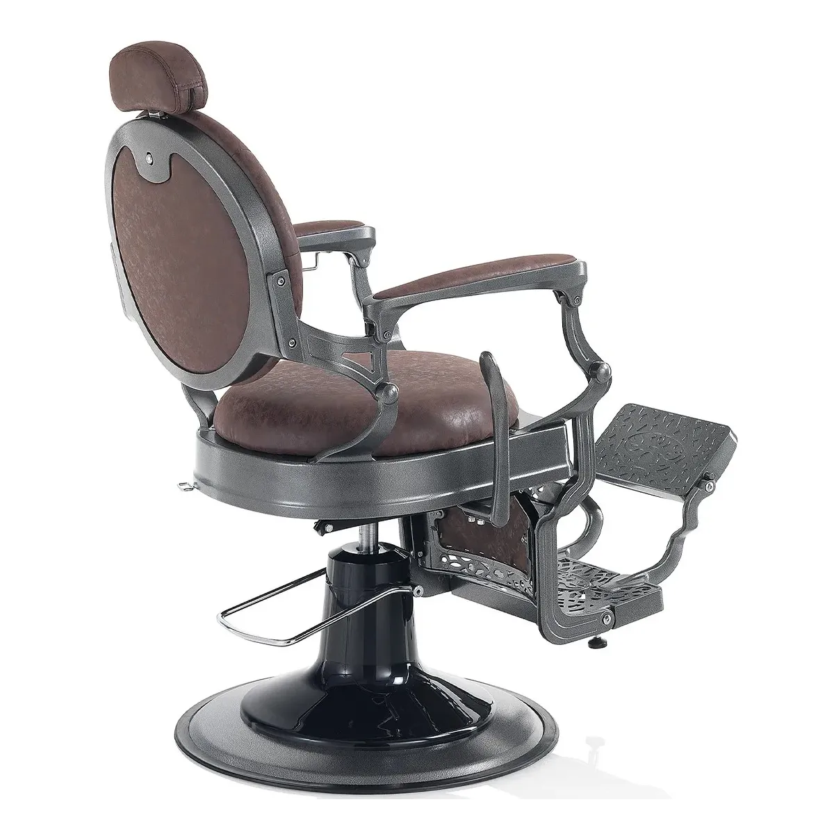 La poltrona barbiere vintage professionale è realizzata con materiali di qualità con imbottitura rivestita in ecopelle che danno alla sedia uno stile elegante offrendo il massimo comfort sia per il cliente sia per il barbiere.
