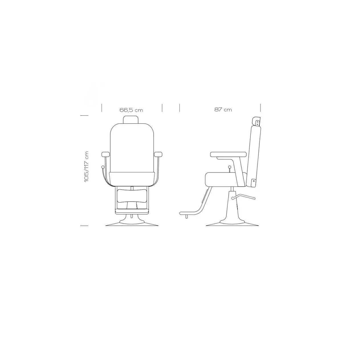 La base della sedia da barbiere è di forma tonda ed è composta in acciaio, è anche dotata di pompa idraulica che consente di regolare la seduta all'altezza desiderata per ogni necessità durante il taglio capelli o l'acconciatura.