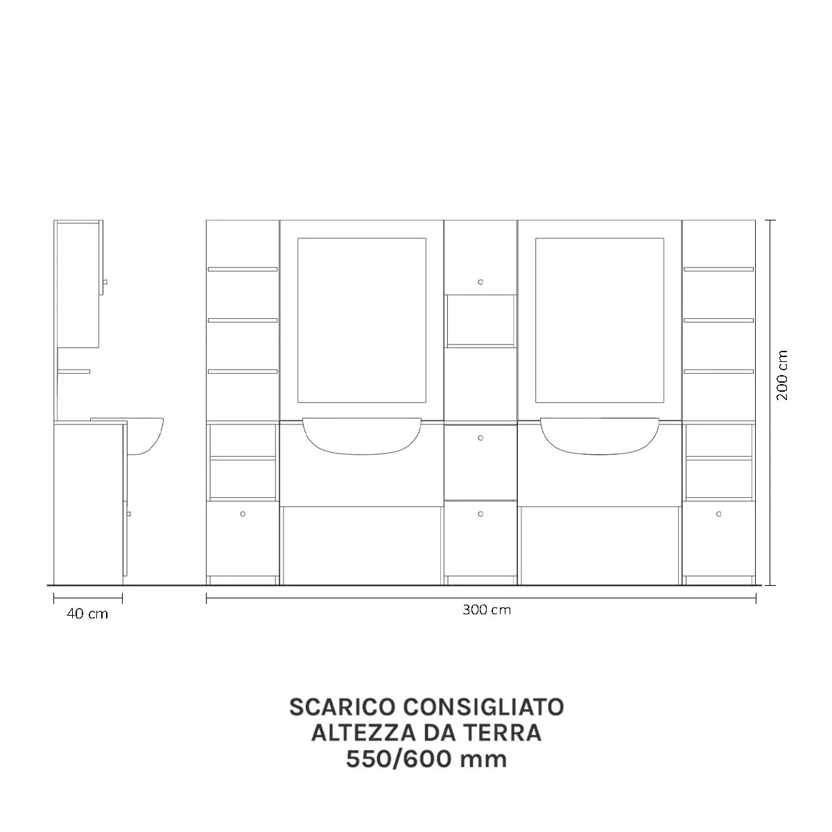 Dimensioni: Altezza 200 cm | Lunghezza 300 cm | Profondità 40 cm