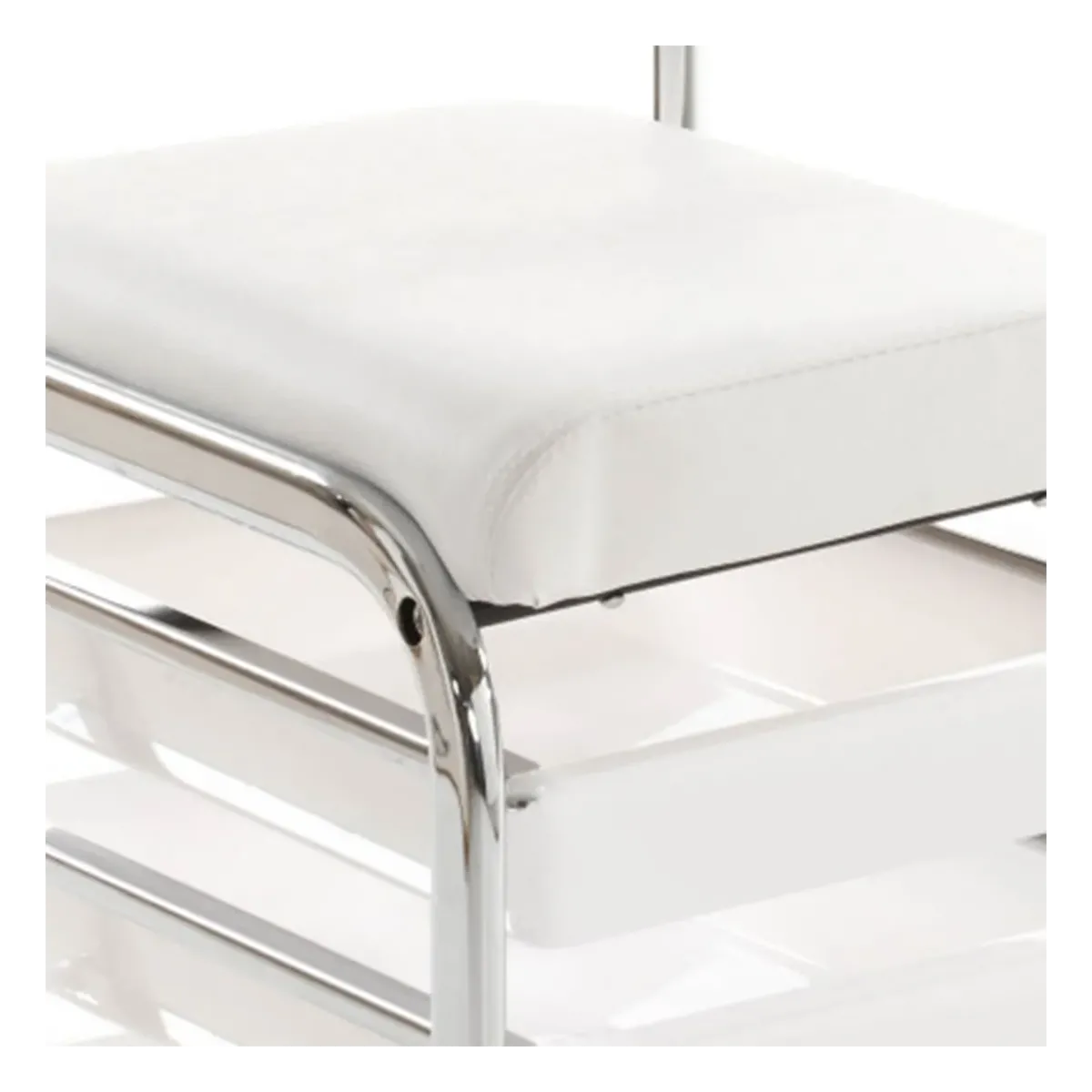 Il carrello manicure professionale chiamato anche carrello pedicure ha una struttura solida in metallo con la seduta in abs rivestita in ecopelle e 3 cassetti porta attrezzi estraibili. I carrelli manicure sono molto confortevoli e pratici grazie alle rotelle che permettono un facile spostamento.