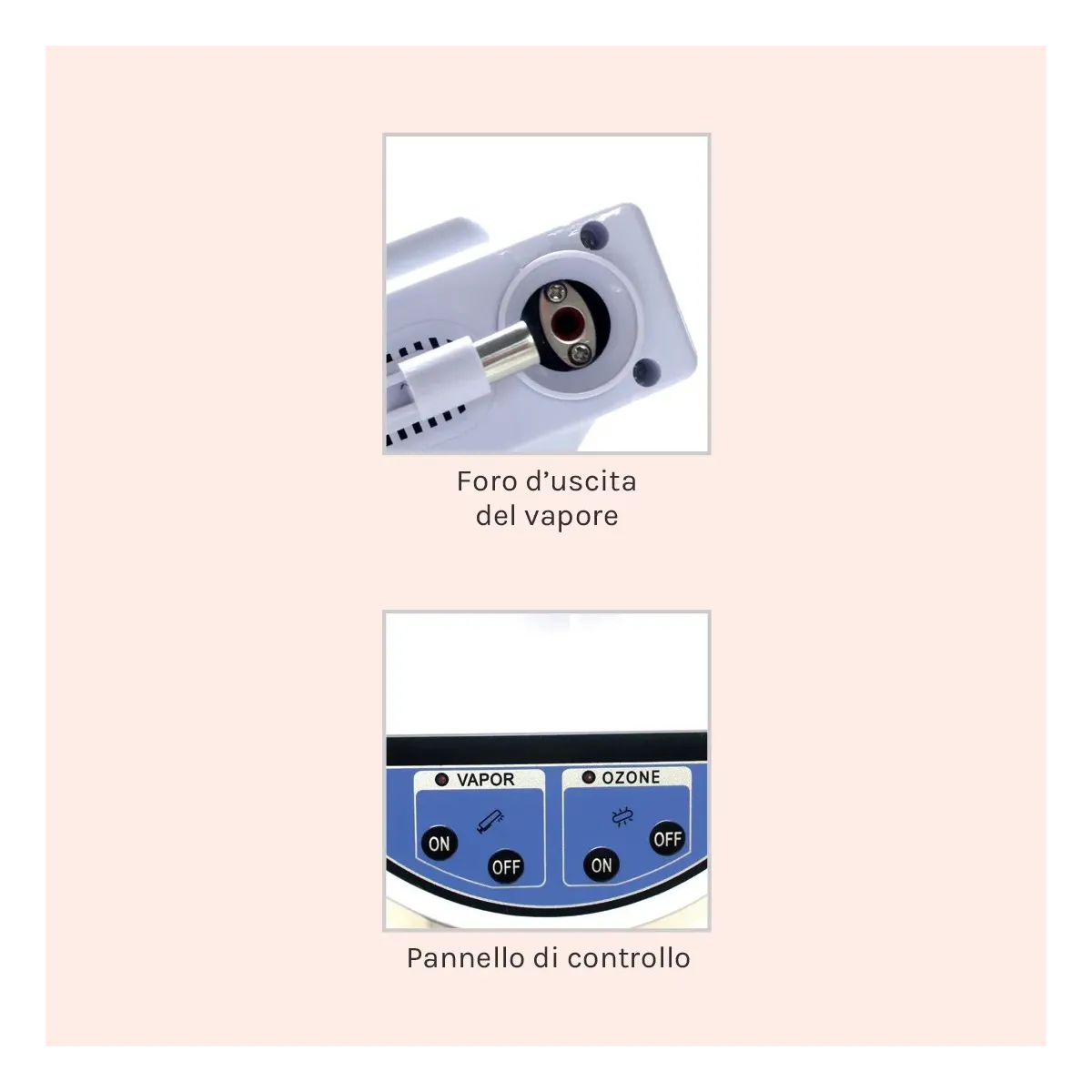 - Il vapore può essere ozonizzato premendo semplicemente sul tasto ozone (On).