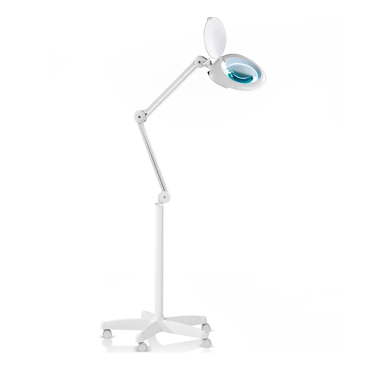 Lampada per estetista 5D Fly con una lente d’ingrandimento leggera e funzionale a 5 diottrie composta con un elegante supporto in metallo verniciato e da un pratico coperchio copri-lampada che consente di preservarne nel tempo la funzionalità. Ideale per centri estetici e strutture mediche.