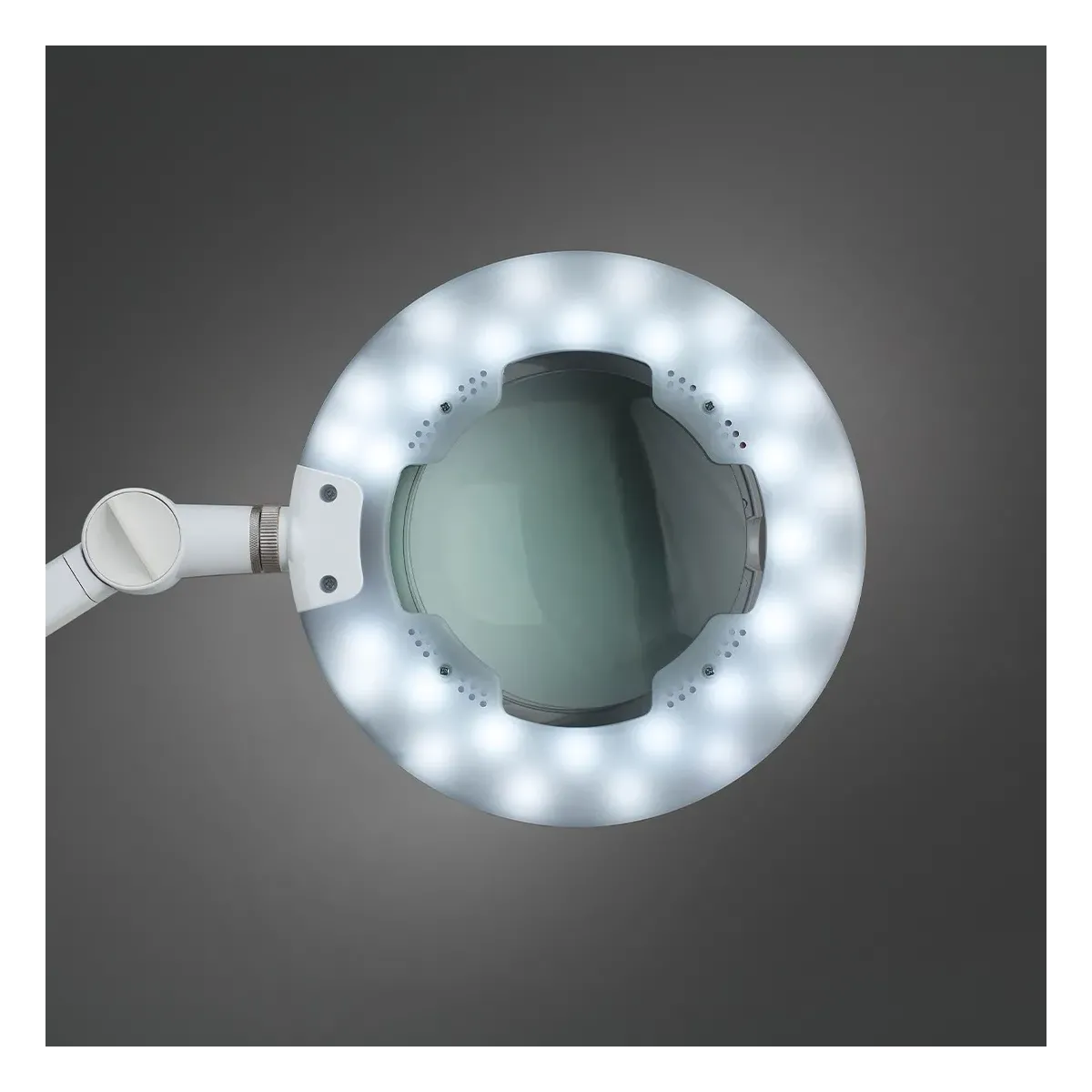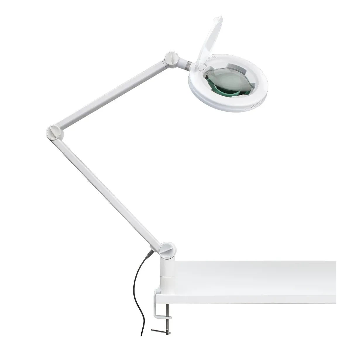 Questa lampada lente ingrandente è lo strumento ideale per professionisti dell'estetica che richiedono precisione e comfort durante le loro attività. Dotata di una lente a 5 diottrie con diametro di 12,7 cm, permette di osservare i dettagli più minuti con estrema chiarezza.