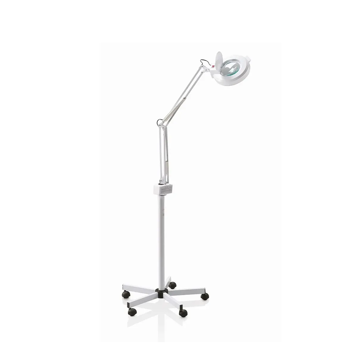 Supporto a colonna su base con 5 ruote girevoli, stabile e facile da spostare in ogni ambiente, ideale per studi e saloni di estetica.