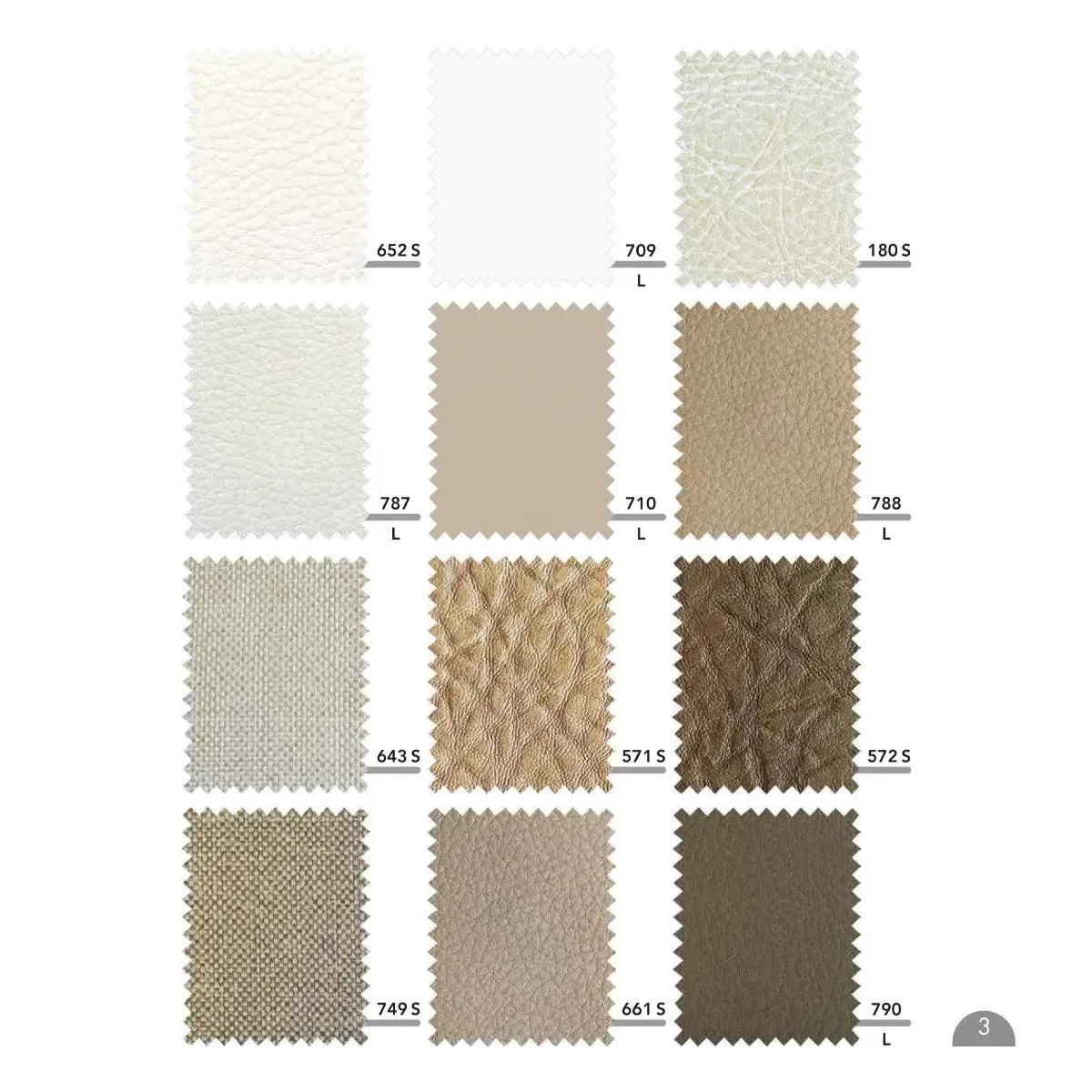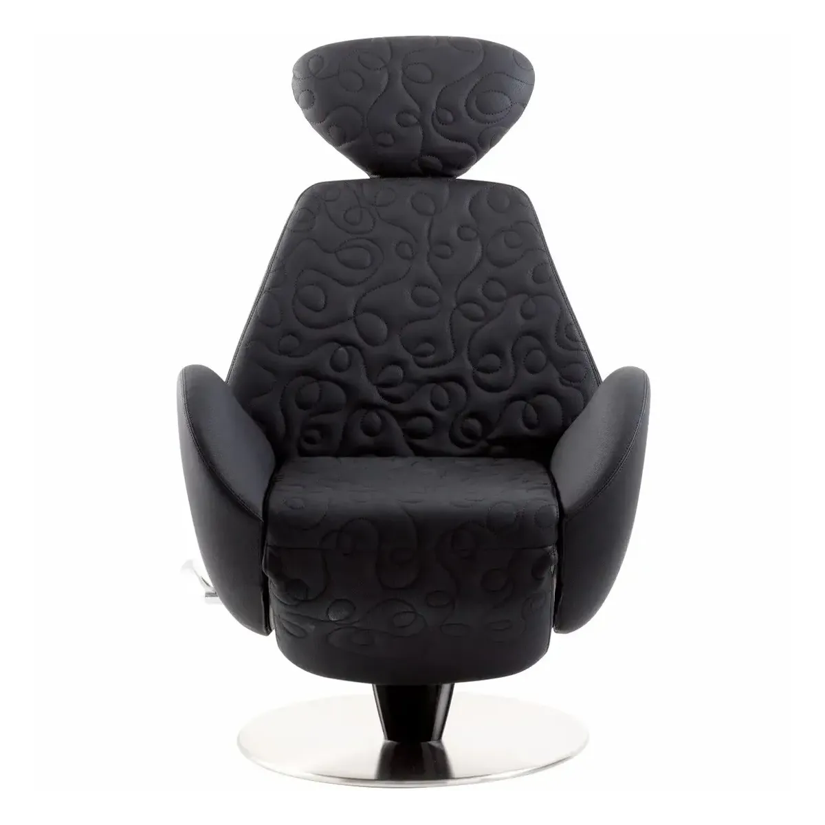 Schienale, seduta e braccioli in poliuretano schiumato con inserti in metallo e legno multistrato. Rivestimenti skai a scelta. Base girevole in alluminio con pompa idraulica e freno. Poggiatesta e schienale reclinabile e alzagambe incluso.