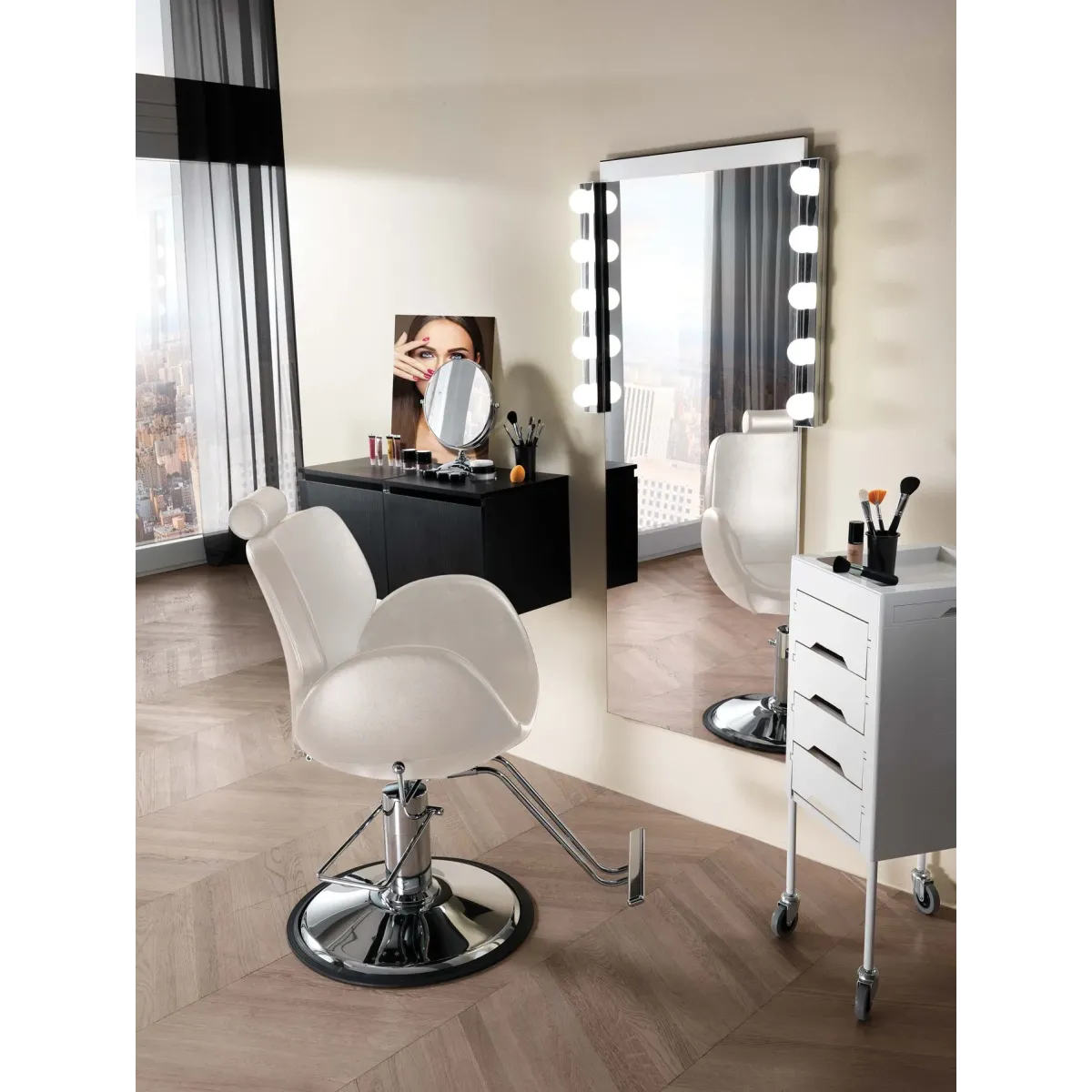 Una Poltrona Make Up è uno strumento irrinunciabile per ogni make up artist! Una buona sedia trucco, non solo evita un torcicollo a chi è seduta, ma favorisce una corretta postura quando si lavora. E bye bye mal di schiena.