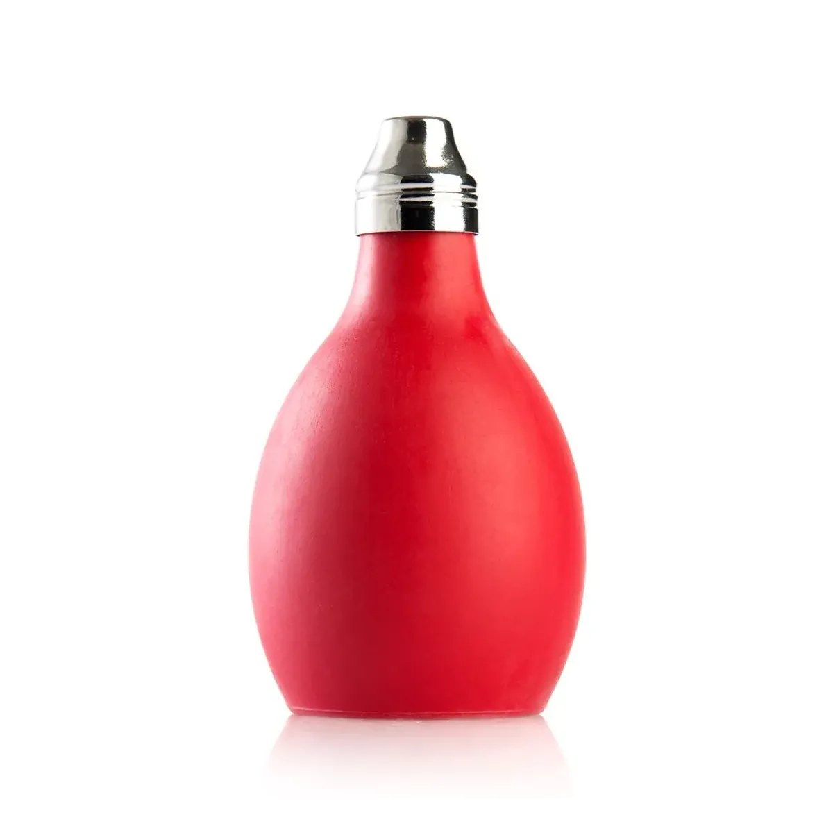 Pompetta talco da barbiere in gomma/plastica con tappo in metallo.