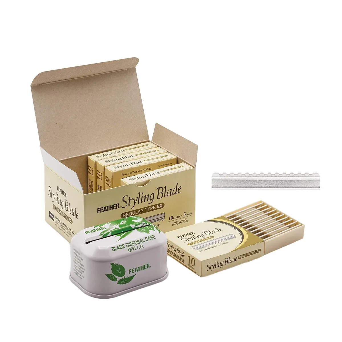 Feather Lame per Rasoio da Barba Disponibile Anche con Contenitore Smaltimento