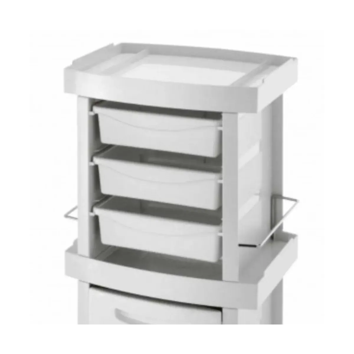 È dotato di 3 ampi e pratici cassetti estraibili frontalmente per poter tenere ordinata tutta l'attrezzatura estetica di cui hai bisogno durante i trattamenti estetici ed un cassettone molto ampio per depositare altre attrezzature o del materiale monouso.